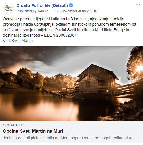 Istodobno, HTZ do sredine prosinca provodi promotivnu kampanju koja za cilj ima promociju svih finalista i pobjednika natječaja EDEN - Europske destinacije izvrsnosti. Osim Hrvatske, kampanja koja promovira sve destinacije finaliste provodi se putem društvenih mreža na tržištu Slovenije, Njemačke i Austrije. Do sada su predstavljene destinacije Bilje, Karanac, Veliko Trojstvo, Roč, općina Sveti Martin na Muri, Čakovec – grad Zrinskih, Sinj – grad Alkara, Sisak – grad pobjeda, itd. U narednim danima slijedi predstavljanje Parka prirode Papuk, dvorca Trakošćan, Parka prirode Lastovsko otočje, Daruvara, Varaždina, Srijema i Slavonije, Zagorja – Bajke na dlanu te ostalih finalista.
