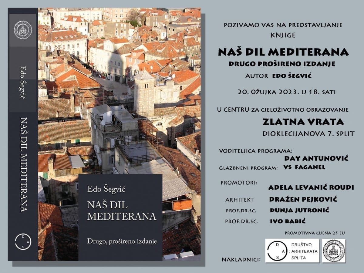 Drugo prošireno izdanje knjige "Naš dil Mediterana" arhitekta Ede Šegvića bit će predstavljeno u ponedjeljak, 20. ožujka 2023. u 18 sati u kino dvorani Zlatna vrata.