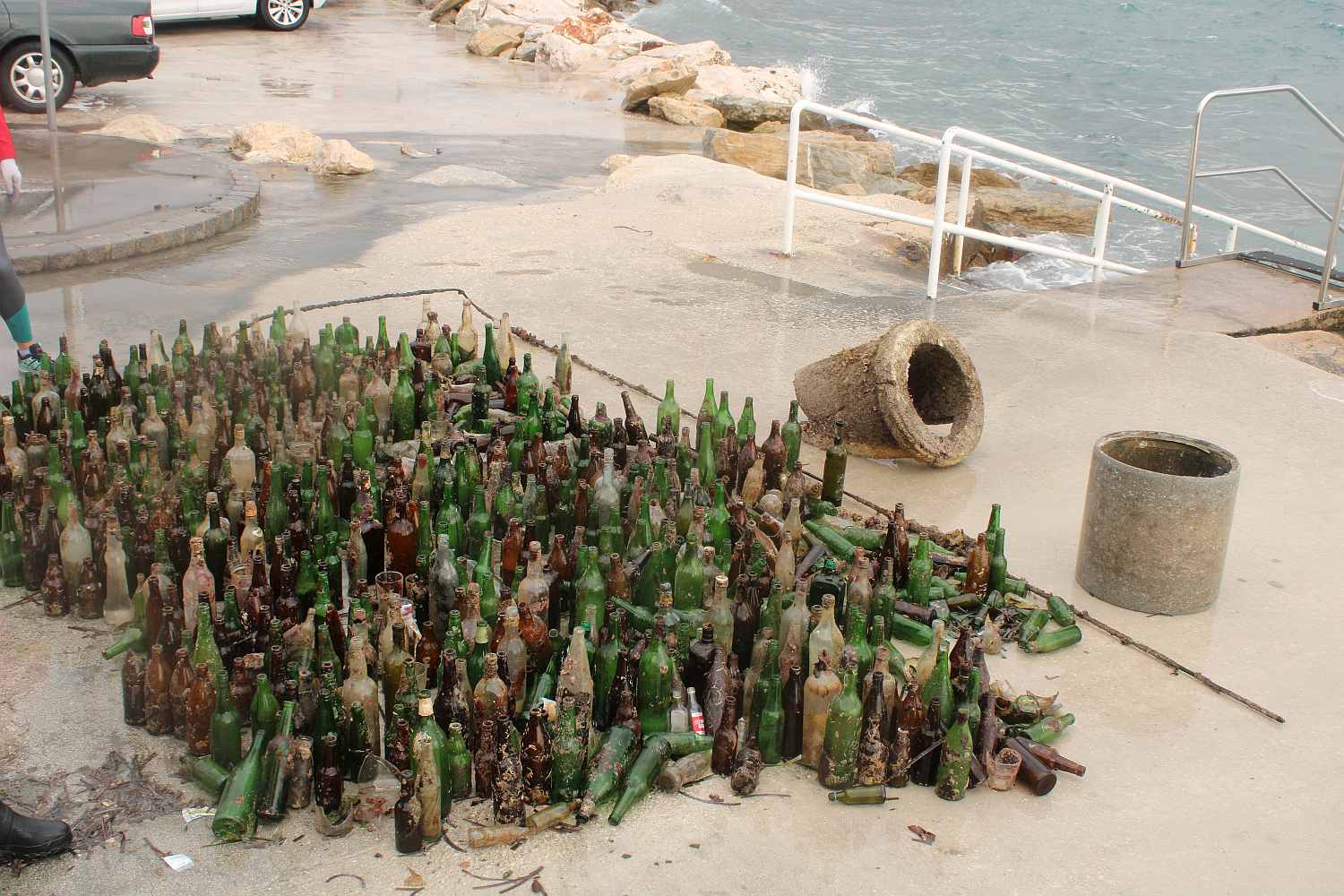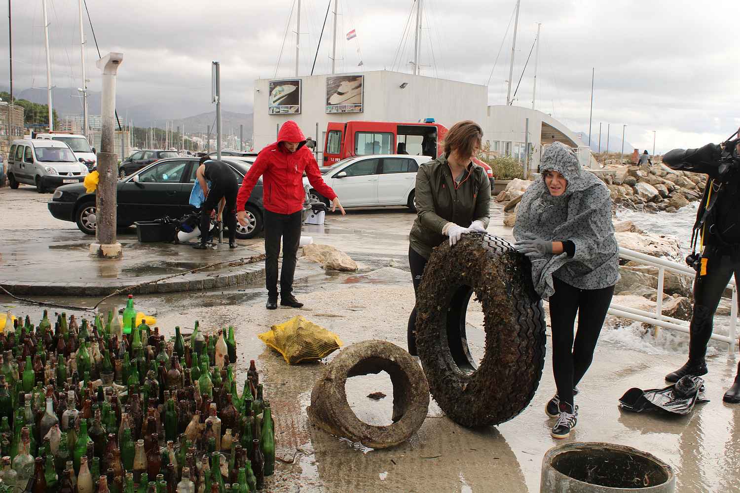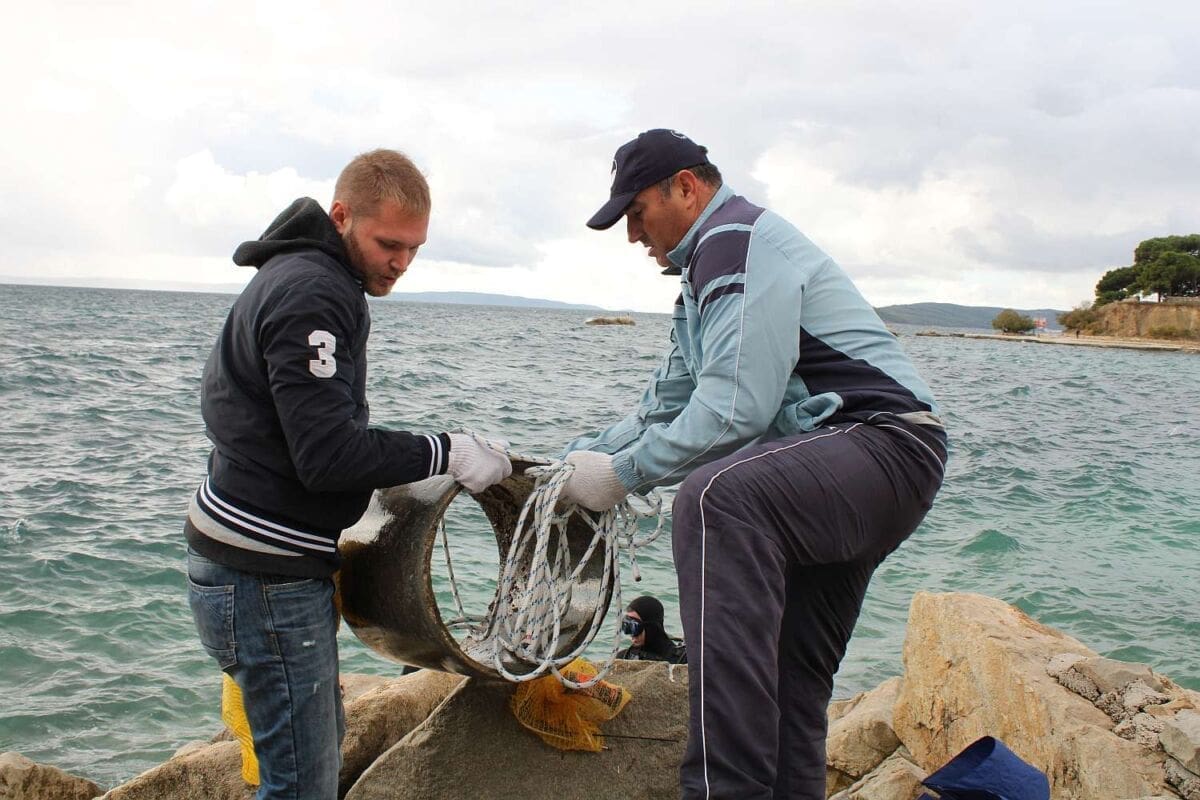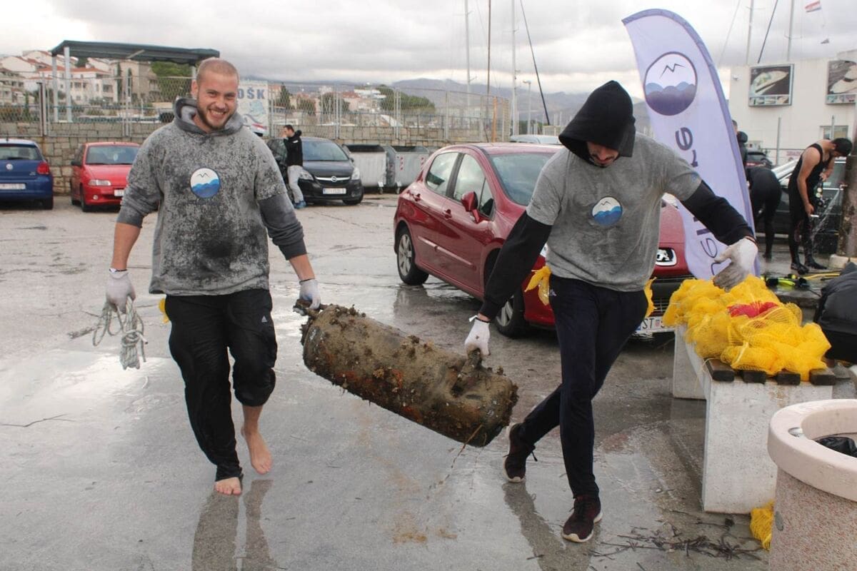 Unatoč kiši i vjetru, iz mora je izvađeno 800 kilograma smeća, a pronađena su i 3 kućišta ručnih granata zvanih "kinder jaje" zbog kojih je obaviještena policija i čiji su se pirotehničari odmah po prijavi pobrinuli za njih.