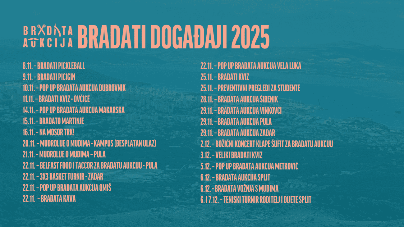 Već su održani neki od velikih događanja koji su oduševili publiku, poput stand-up nastupa “Mudrolije o mudima” u Zagrebu i Fešte o’ Bradate u Trogiru, a u studenom i početku prosinca svaki dan će postati bradati.