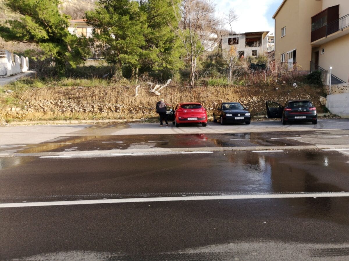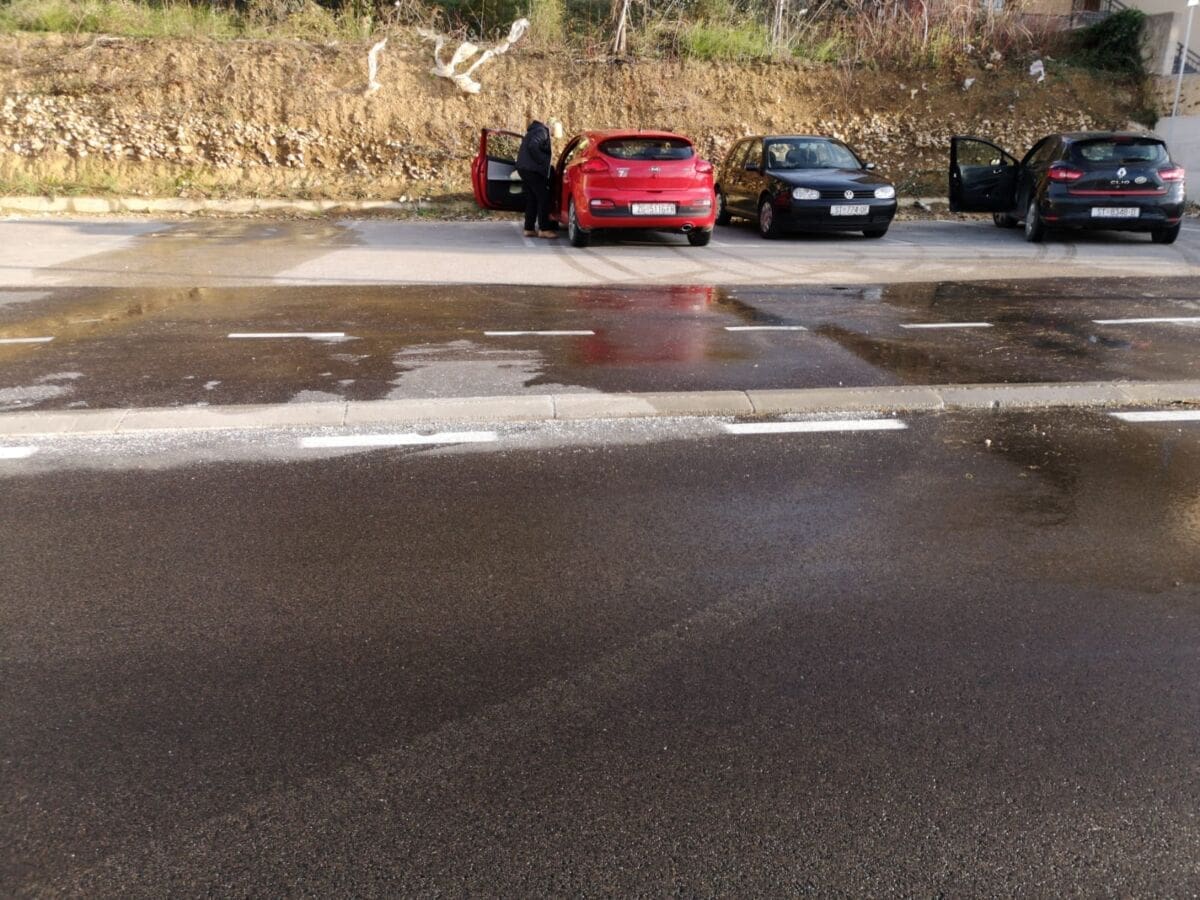 Kako su nam kazali stanovnici ovog područja, voda se sa špine pušta već mjesecima! Podsjetimo, korisnici ovog vodovodnog sustava ne plaćaju vodu. Očito je da je voda natopila zemljište na koje se ispušta do točke zasićenja, pa ona nastavlja prirodnim padom teći na spomenuti parking i dalje na cestu.