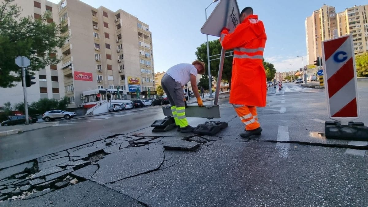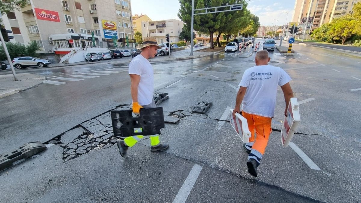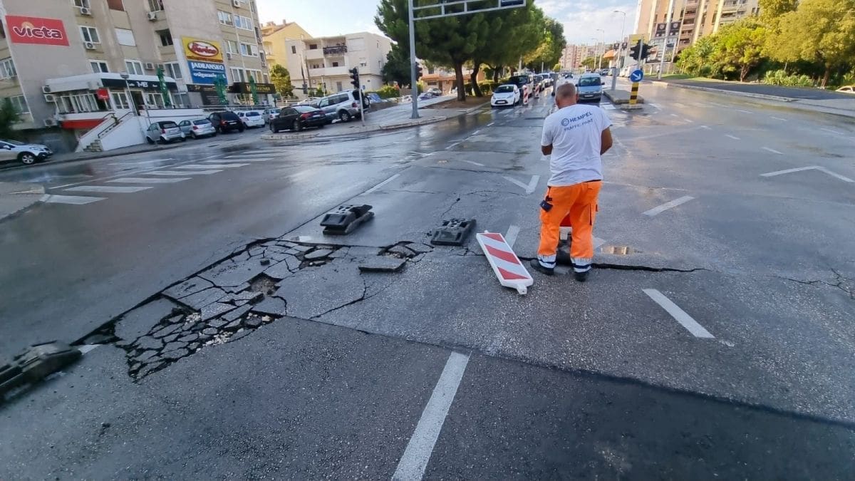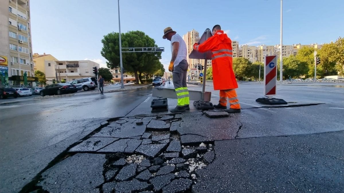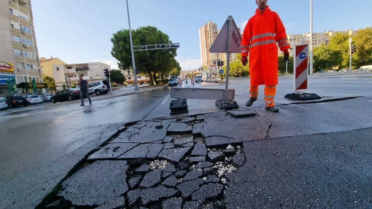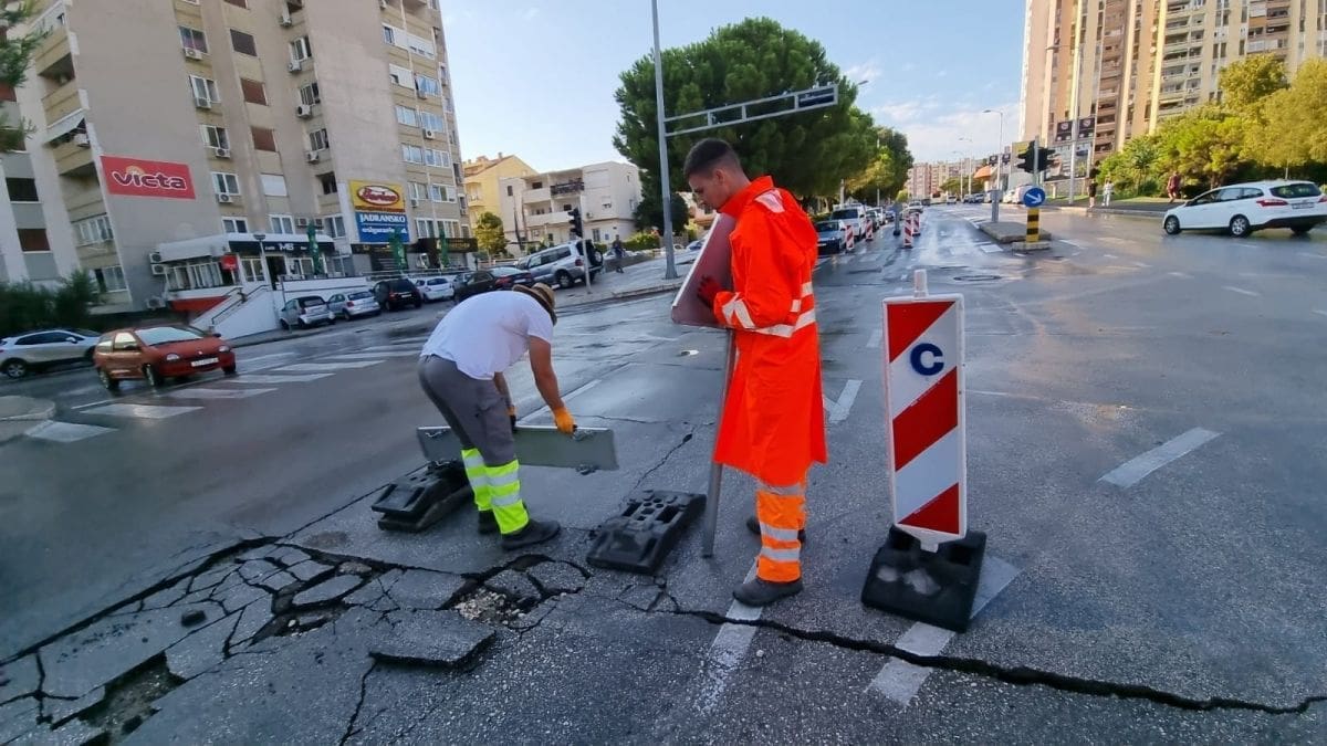 "Dojavu o oštećenju asfalta uslijed nevremena zaprimili smo u 16:20. Ophodari su na terenu te reguliraju promet", rekli su nam.