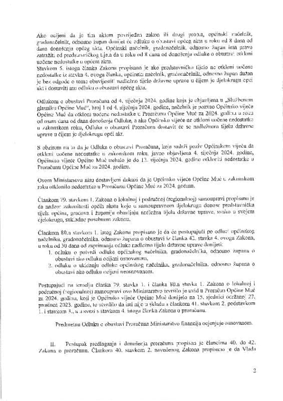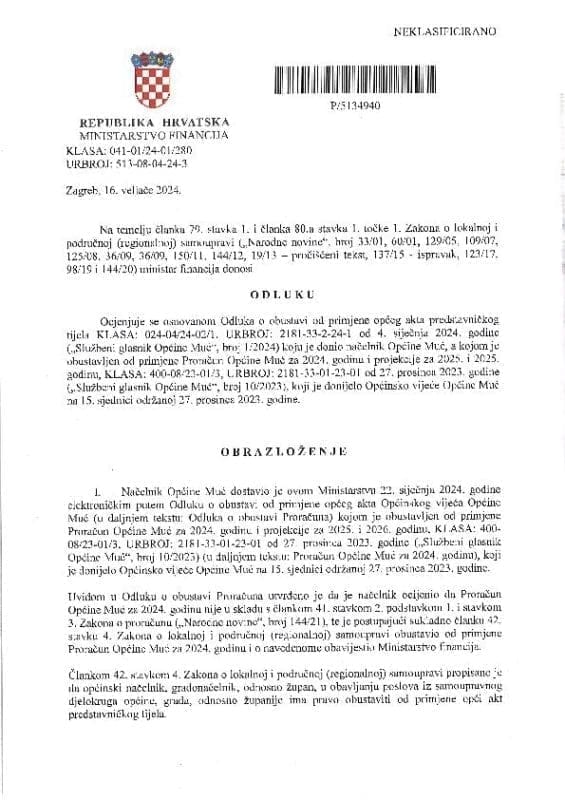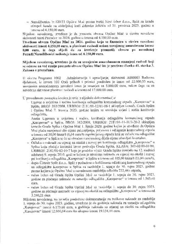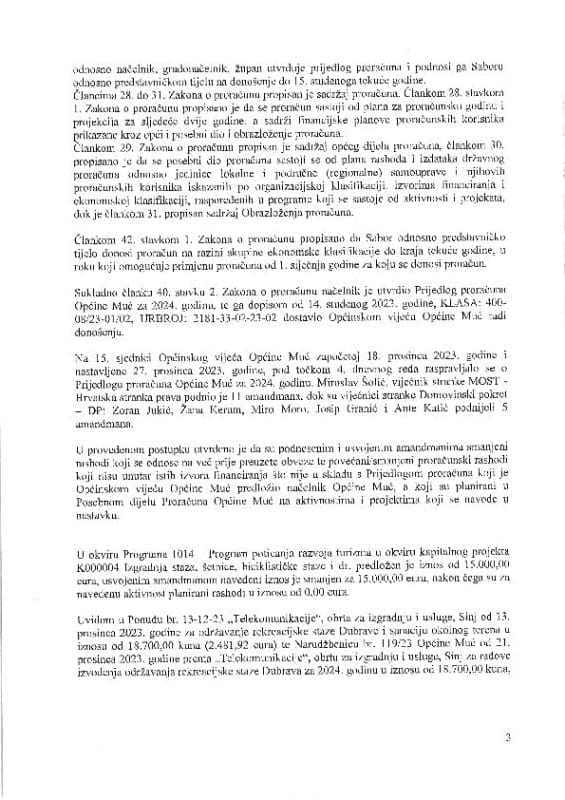 Općina Muć još nema usvojeni Proračun za 2024. godinu s projekcijama za 2025. i 2026. i njene aktivnosti se stoga privremeno financiraju mada su i za to prošli rokovi od prva tri mjeseca kad se proračun trebao usvojiti. Iako najavljen u Dnevnom redu sjednice Općinskog vijeća prijedlog Proračuna je sinoć skinut, a kako saznajemo, razlog je što načelnik Filip Stupalo nije u njemu uvrstio ni jedan prijedlog njegove opozicije koja ima većinu u Općinskom vijeću.