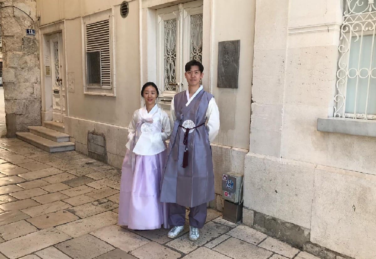 Jutros smo ispred kuće na Rivi zatekli simpatičan korejski par u narodnoj nošnji njihove zemlje.