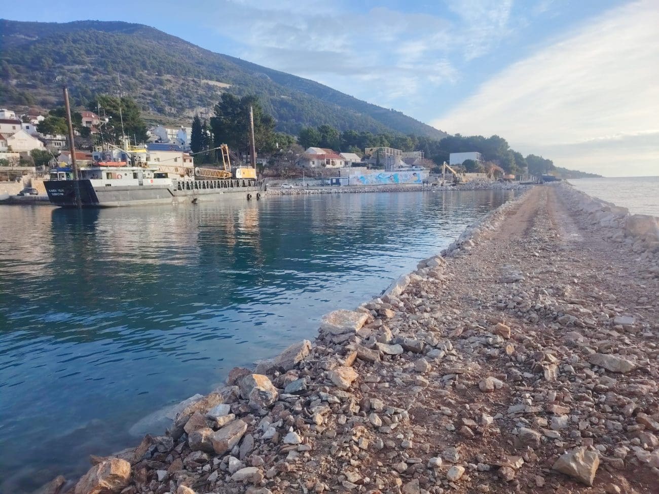 Radovi su započeli u svibnju 2025. te ih izvodi hrvatska tvrtka Texo Molior. Radi se o složenom inženjerskom zahvatu koji obuhvaća izgradnju nove luke istočno od postojeće, uz formiranje dužobalne šetnice koja će povezati obje luke.