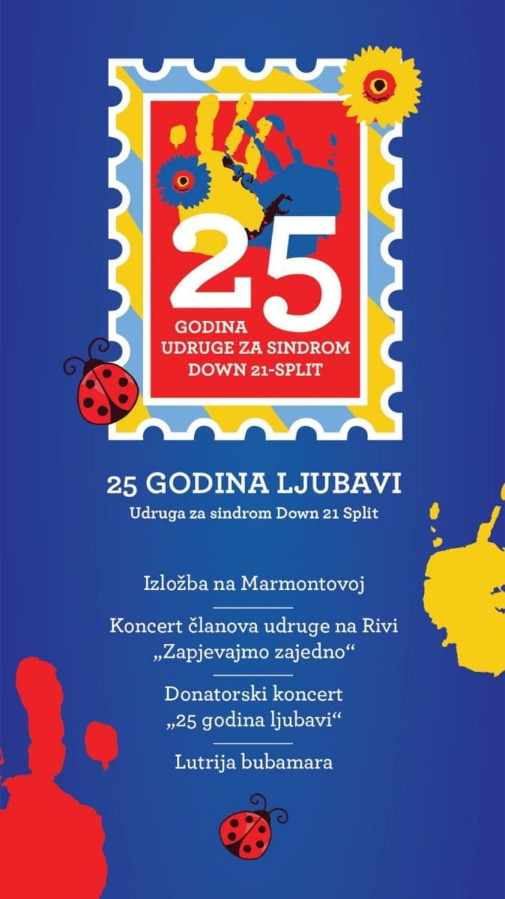 Program započinje izložbom "25 godina ljubavi" na Marmontovoj ulici, koja će biti otvorena od 19. ožujka, s autorskim fotografijama koje prikazuju život i aktivnosti članova udruge. U subotu, 22. ožujka, od 11 sati na splitskoj Rivi održat će se koncert članova udruge, uz brojne donatorske štandove, dok će u večernjim satima, od 20 sati, u restoranu Kampus biti organiziran veliki donatorski koncert.