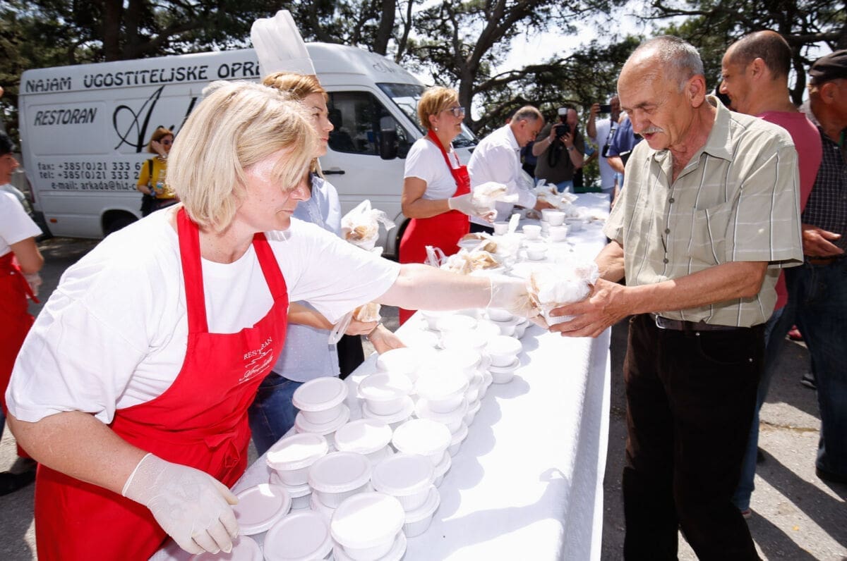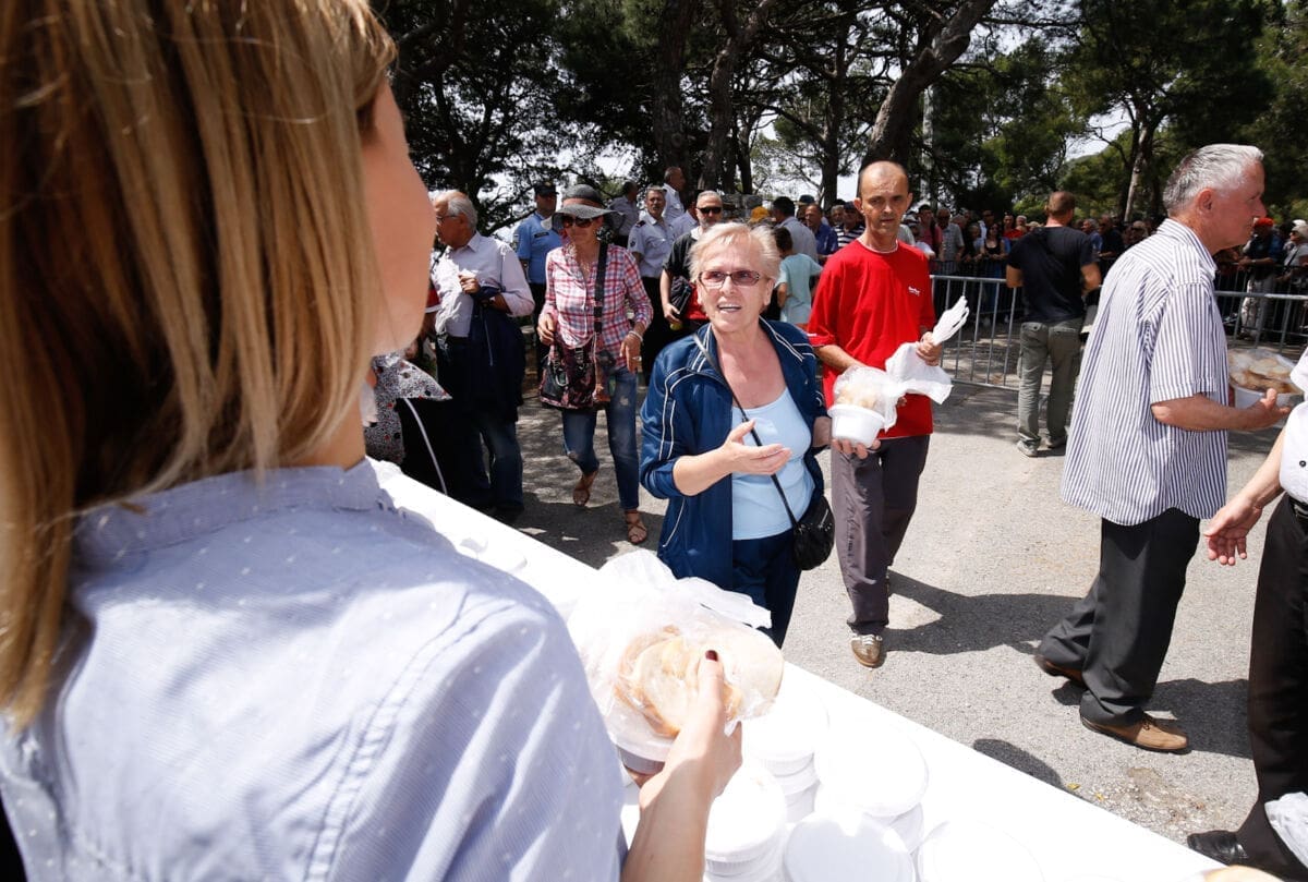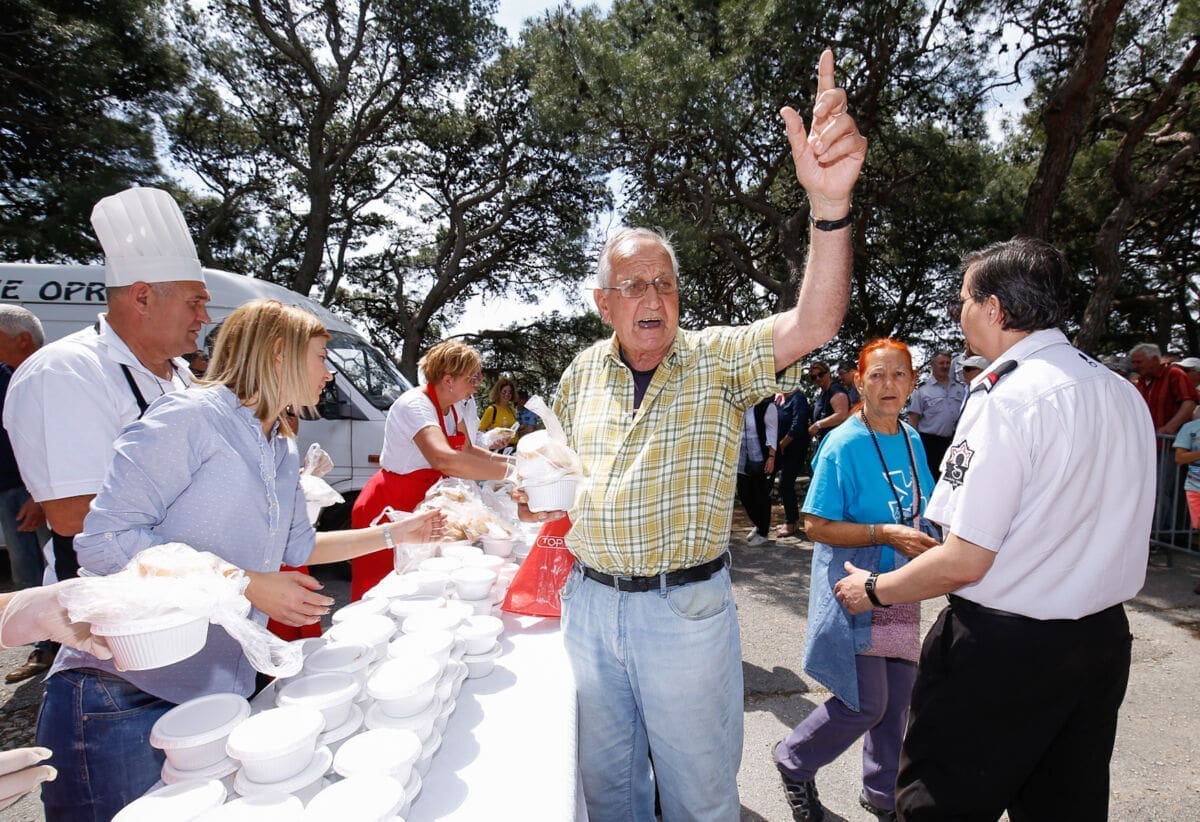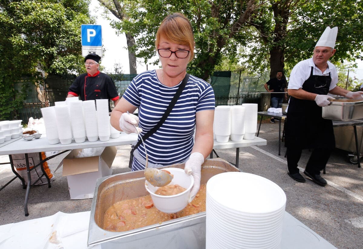 Na platou ispred nekadašnjeg ZOO vrta u 12 sati podijeljeno je 2.500 besplatnih porcija fažola s kobasicama i suhim mesom.