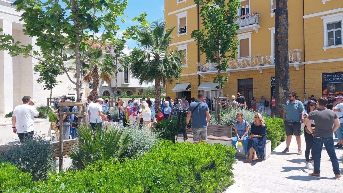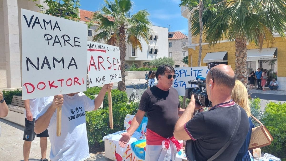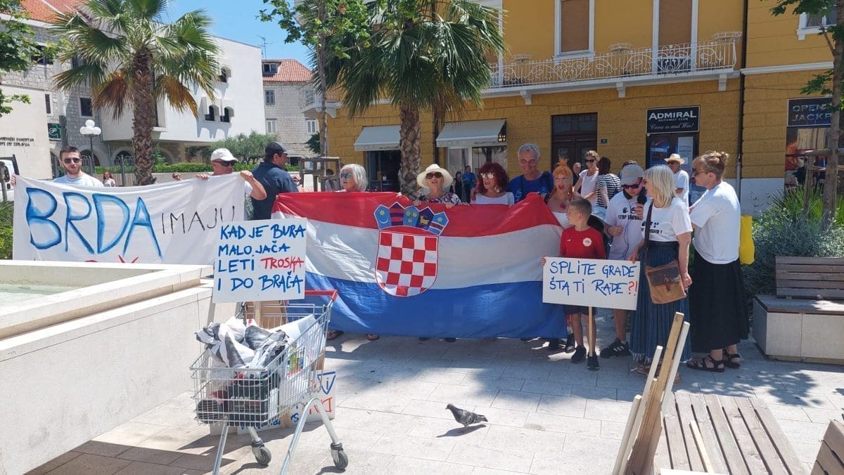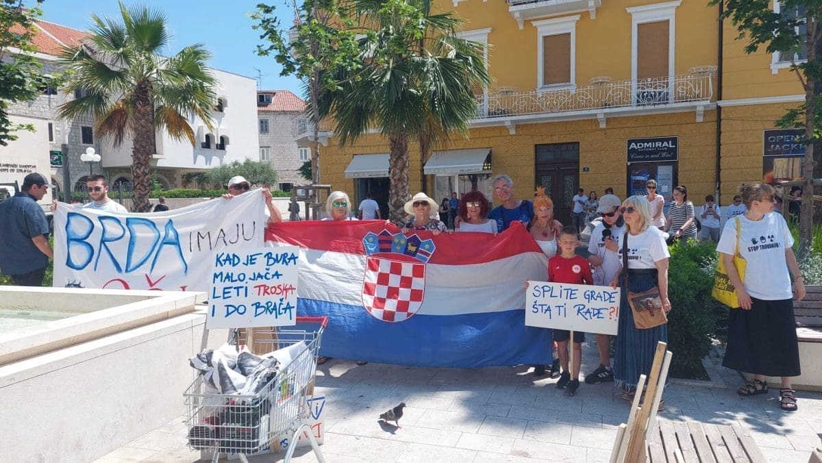 "Kad je bura malo jača, leti troska i do Brača", "Splite grade, što ti rade?", "Sada-ko hoće živjeti", to su samo neki od transparenata s kojima su prosvjednici prešli preko Rive.