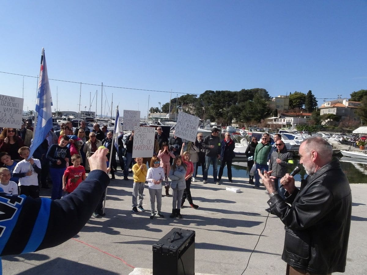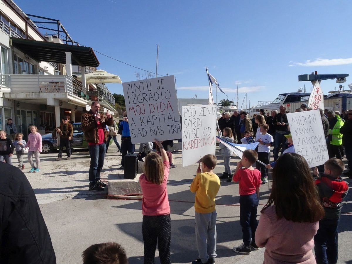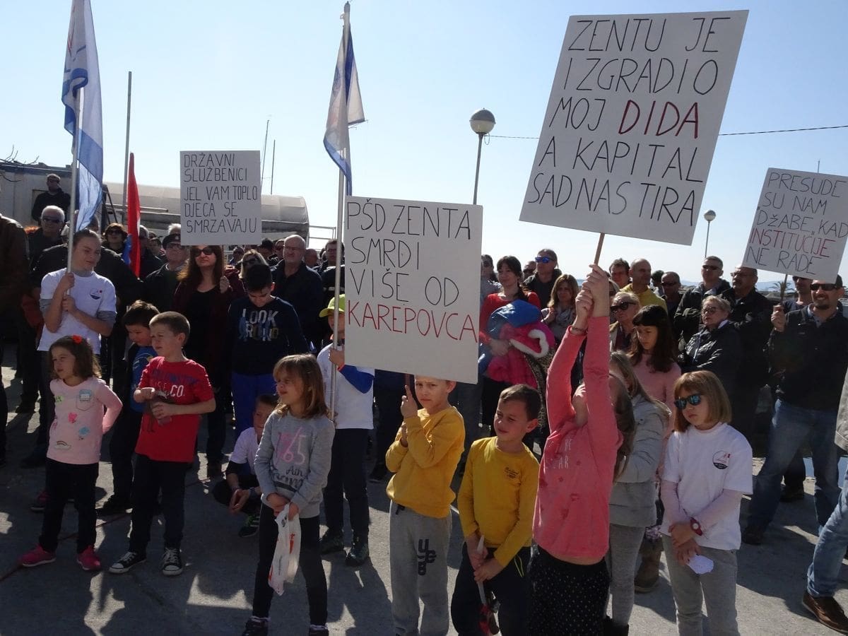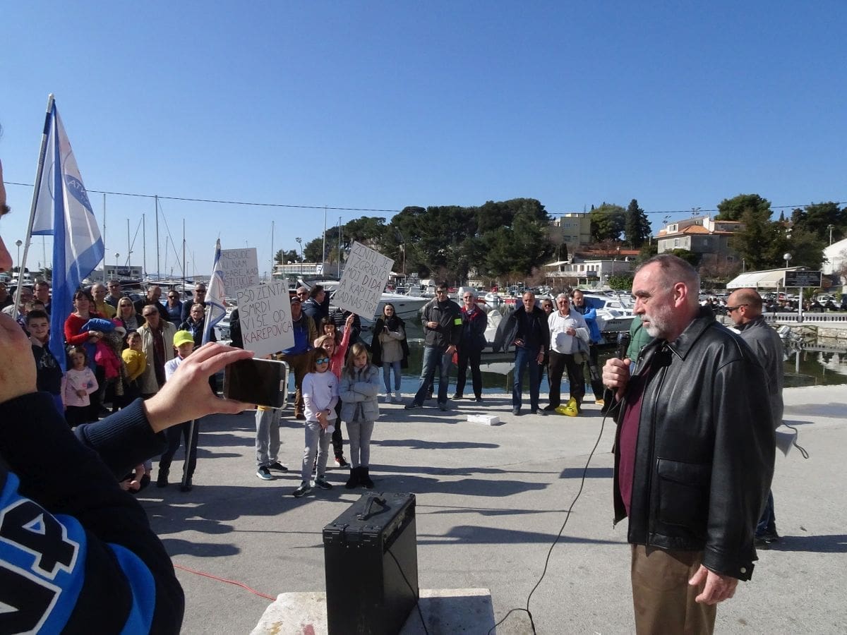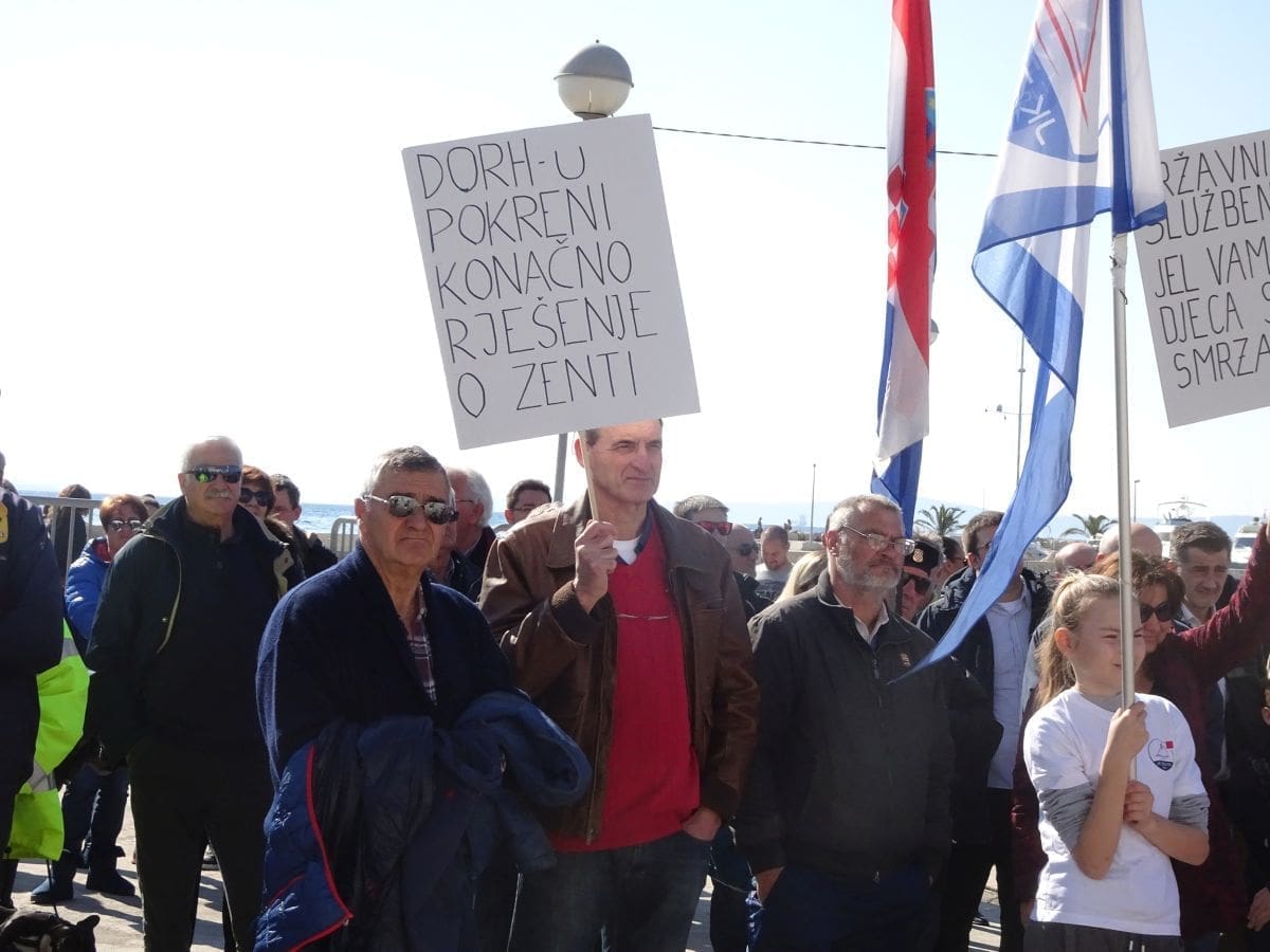 Među govornicima na prosvjedu su bili ugledni kirurg dr. Lovel Giunio i košarkaška legenda Duje Krstulović te predsjednik JK Zenta Dominik Dominović i trenerica Bruna Mandić.