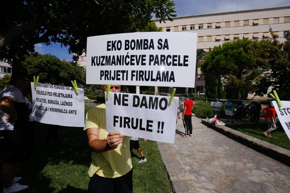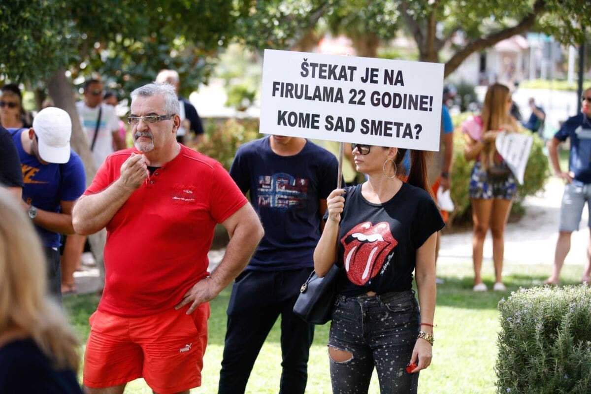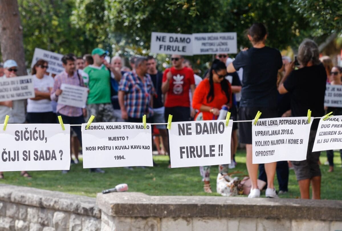 U 13 sati pred Banovinom je počeo prosvjed vlasnika kafića "Firule" s grupom od nekoliko desetaka građana. Vlasnici ovog kafića kažu da će se njihov objekt srušiti nakon 22 godine, točnije 17. rujna ove godine. Za sve su okrivili sadašnju gradsku vlast.