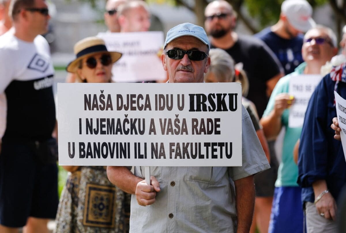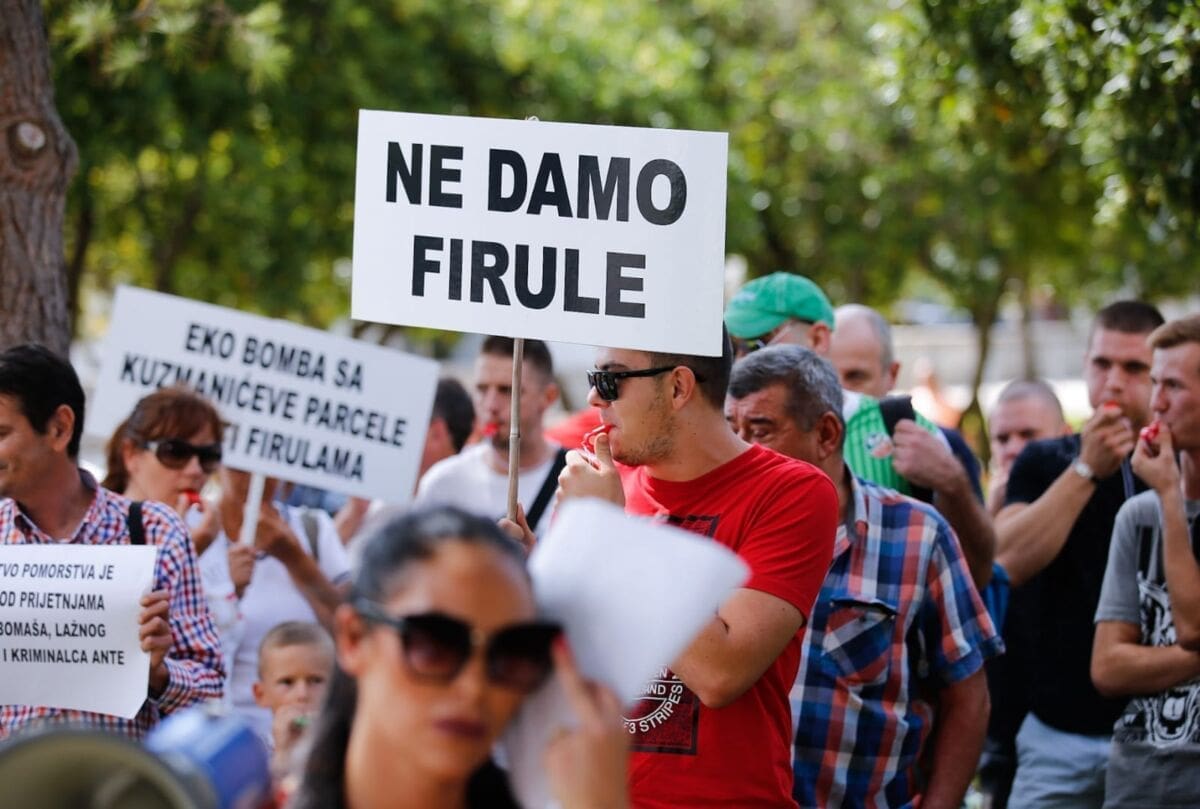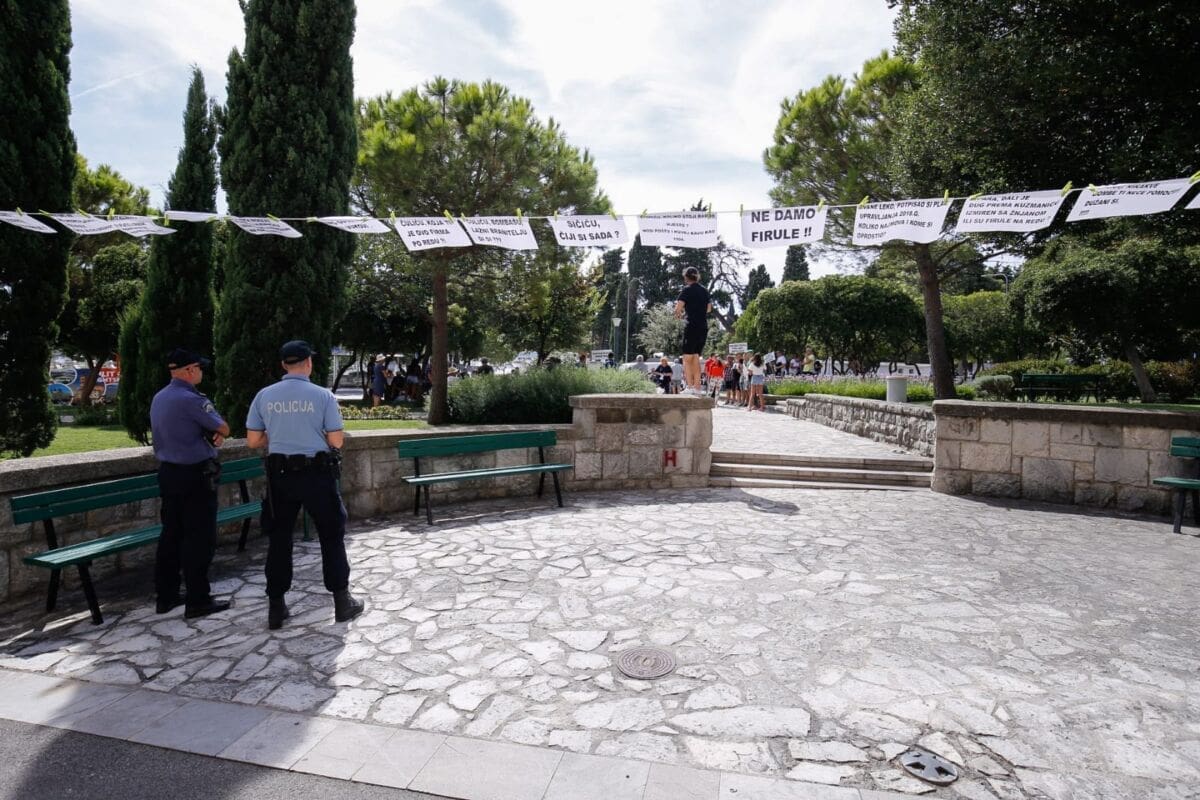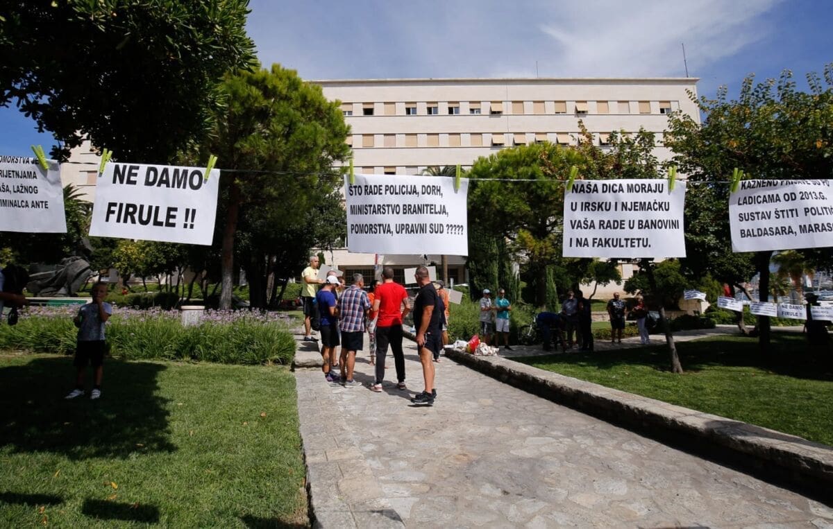 U 13 sati pred Banovinom je počeo prosvjed vlasnika kafića "Firule" s grupom od nekoliko desetaka građana. Vlasnici ovog kafića kažu da će se njihov objekt srušiti nakon 22 godine, točnije 17. rujna ove godine. Za sve su okrivili sadašnju gradsku vlast.