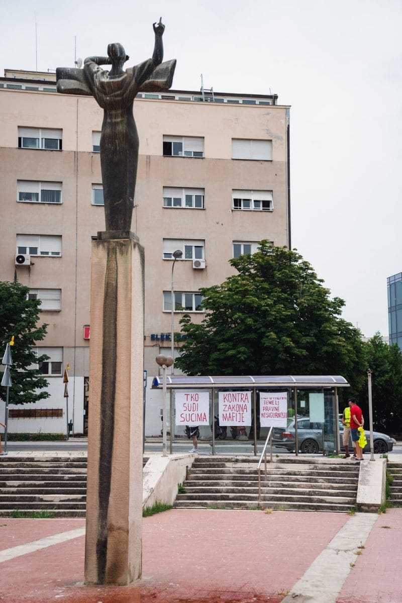 "Borimo se za samostalnu i neovisnu sudbenu vlast, protiv zakona mafije, protiv sprege vlasti, protiv korupcije pravosuđa, protiv DORH-a koji ne zastupa interese opće javnosti", kazali su.