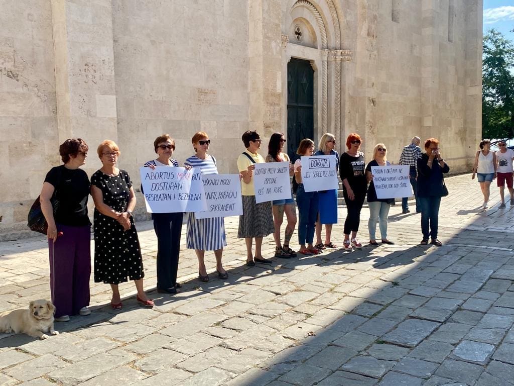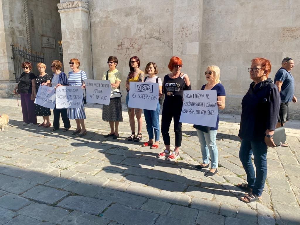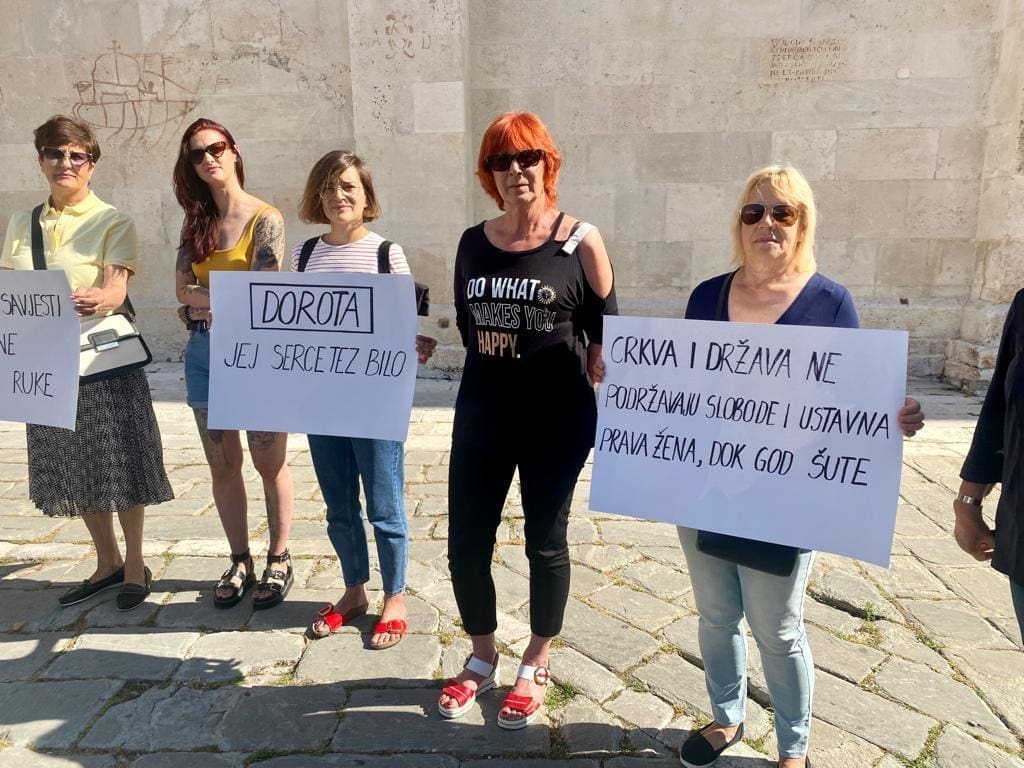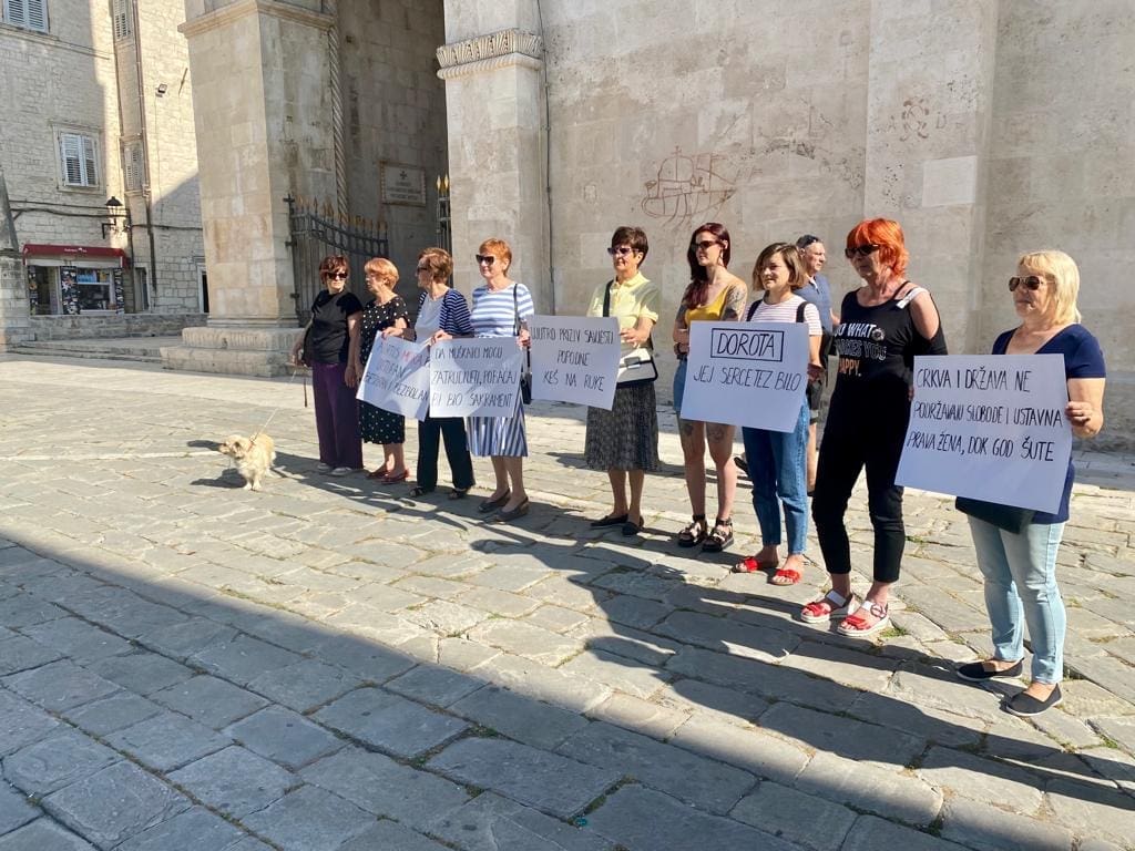 "Današnji prosvjed posvetili smo Doroti, poljskoj državljanki koja je umrla od sepse jer je tri dana bila bez plodne vode, a liječnici su odbili napravit pobačaj", poručili su organizatori iz Socijaldemokratskog forum žena SDP-a Trogir, koji su i ove godine održali prosvjed na gradskom trgu nasuprot katedrale, jer "uvozni fundamentalizam mora se zaustaviti".