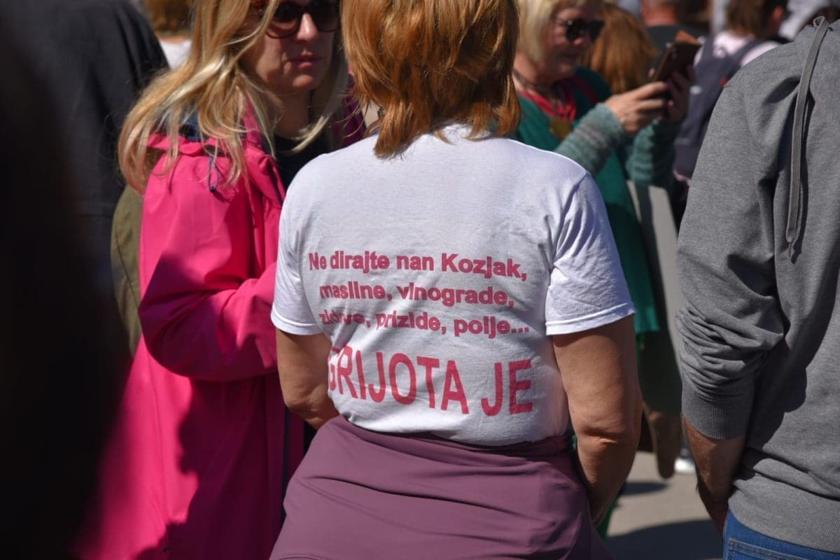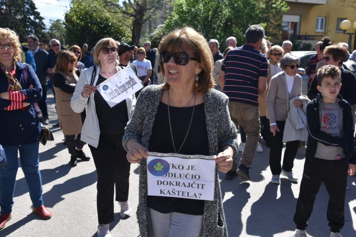 Na mirnom prosvjedu koji se danas održao ispred gradske uprave, a koji je organizirala Građanska inicijativa Spasimo Kozjak i Kaštela okupio se poveći broj Kaštelana koji su se oboružali transparentima i zviždaljkama