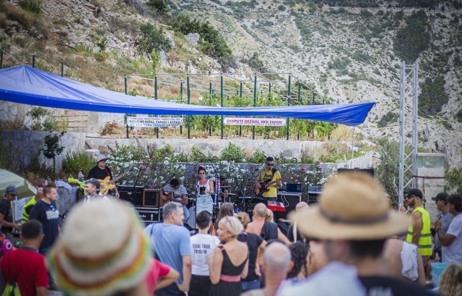 U uvali Vruja jučer je održan drugi, veliki Festival bespravne gradnje i devastacije prirode na kojem su prosvjednici tražili hitnu sanaciju opasnih ostataka bivše tvornice u Dugom Ratu kod Omiša, a na koju se država obvezala još 2019. godine, no do danas po tom pitanju još ništa nije napravljeno.