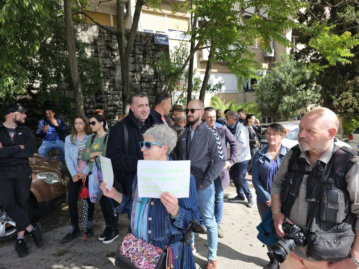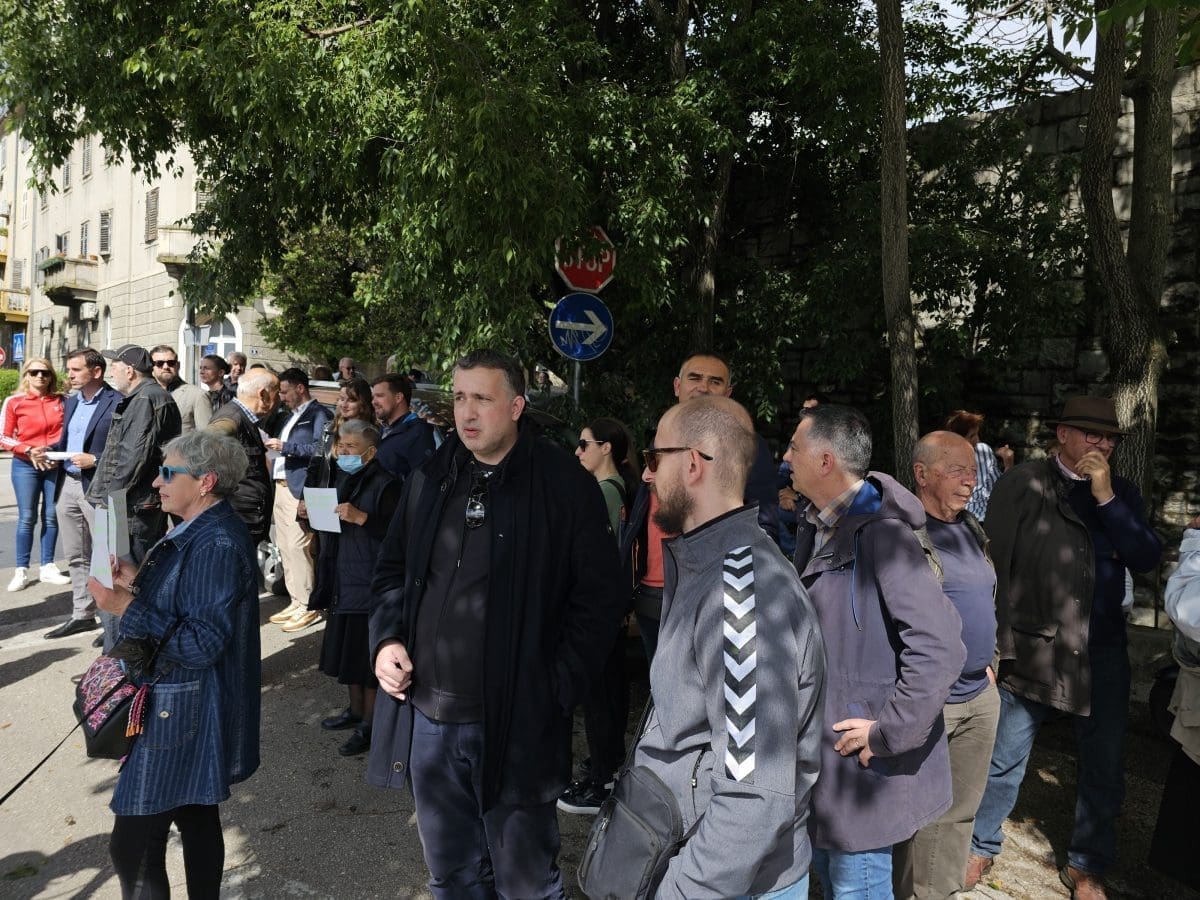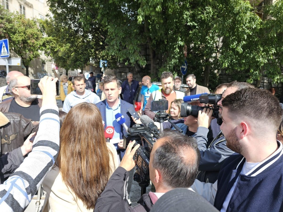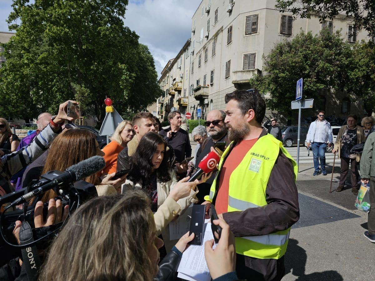 Pred okupljene novinare i prosvjednike stao je splitski dogradonačelnik Bojan Ivošević.