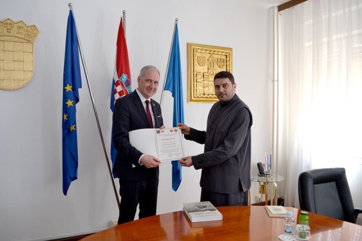 Za svog posjeta Splitu, protojerej – stavrofor Kirko Velinski, parohijski svećenik Makedonske pravoslavne crkve u Hrvatskoj, susreo se danas s gradonačelnikom Androm Krstulovićem Oparom kako bi mu izrazio zahvalnost na dosadašnjoj suradnji i odnosu s cjelokupnom makedonskom zajednicom te u ime Metropolita Makedonske pravoslavne Eparhije za Europu gospodina Pimena uručio zahvalnicu za iznimnu suradnju i financijsku pomoć za izgradnju Makedonske pravoslavne crkve u Zagrebu.