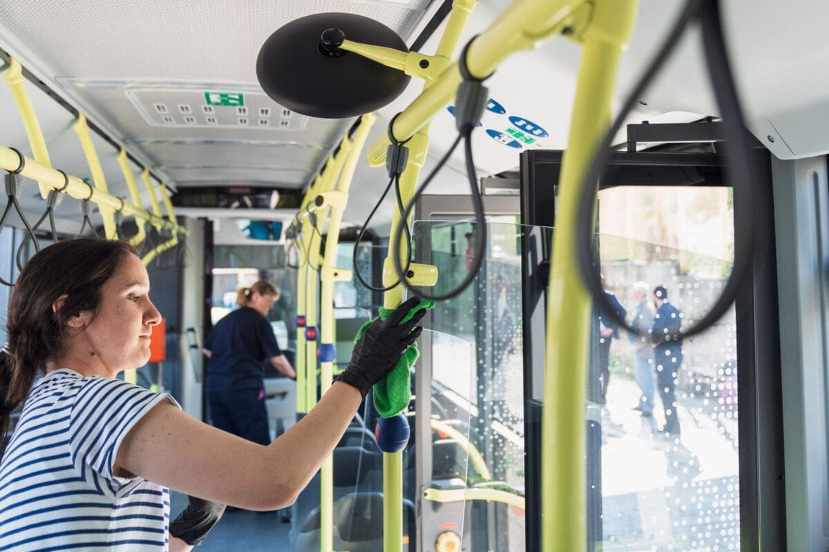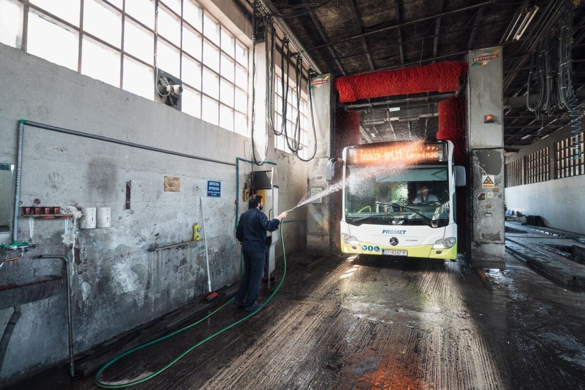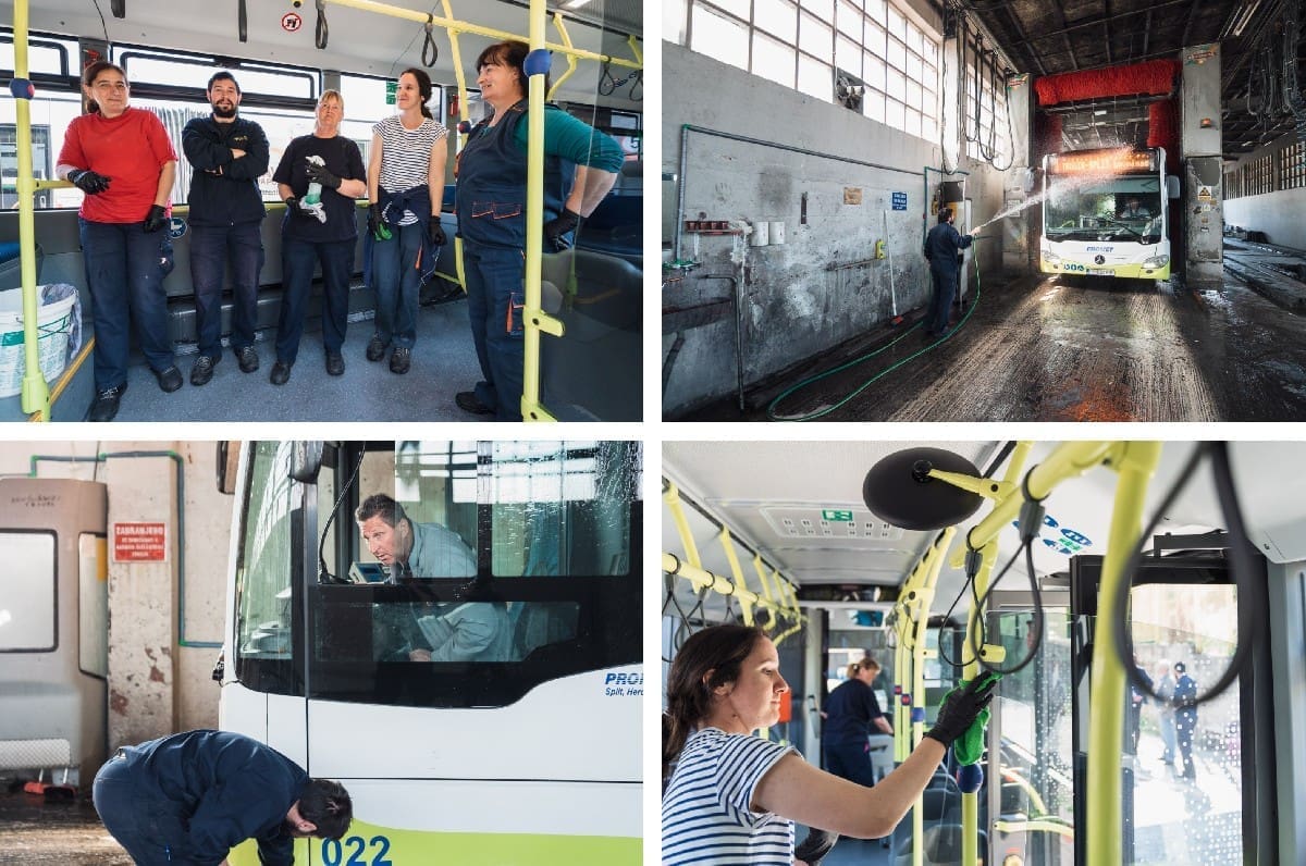 - Promet Split je osigurao svim vozačima zaštitne maske i rukavice koje je preporučeno imati dok upravljaju autobusima također moraju imati i dezinficijens za ruke. U ovoj prvoj fazi uspostave prometa javnog gradskog prijevoza na ulicama su autobusi sa zaštitnim kabinama kako bi izolirali svoje djelatnike od putnika.