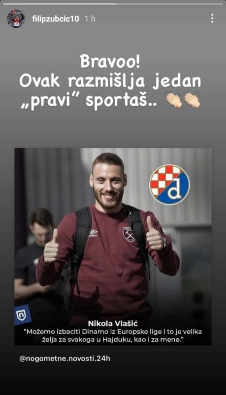''Bravoo! Ovak razmišlja jedan 'pravi' sportaš…'' ironično je napisao Zubčić koji je inače veliki dinamovac.