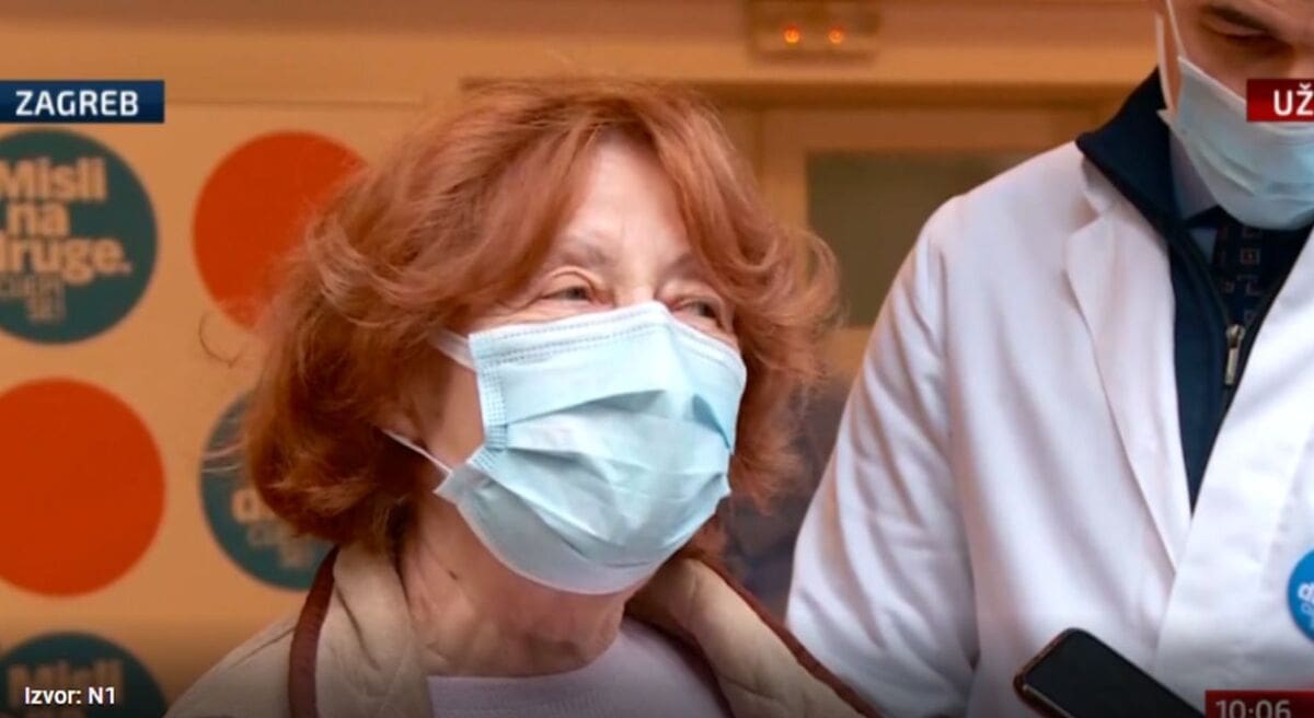 Branka Aničić iz Doma za starije Trešnjevka prva je osoba koja je primila cjepivo protiv koronavirusa u Hrvatskoj. Nakon cijepljenja dala je izjavu za medije.