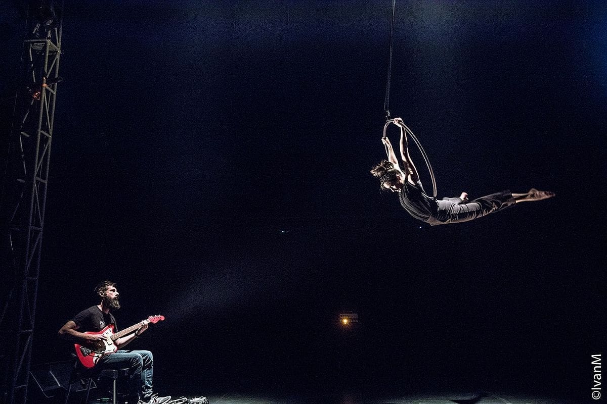 "Zvuk i Tijelo" predstava je suvremenog cirkusa koja kroz interakciju pokreta na zračnom krugu i zvučnim improvizacijama progovara o potrazi za skladom.