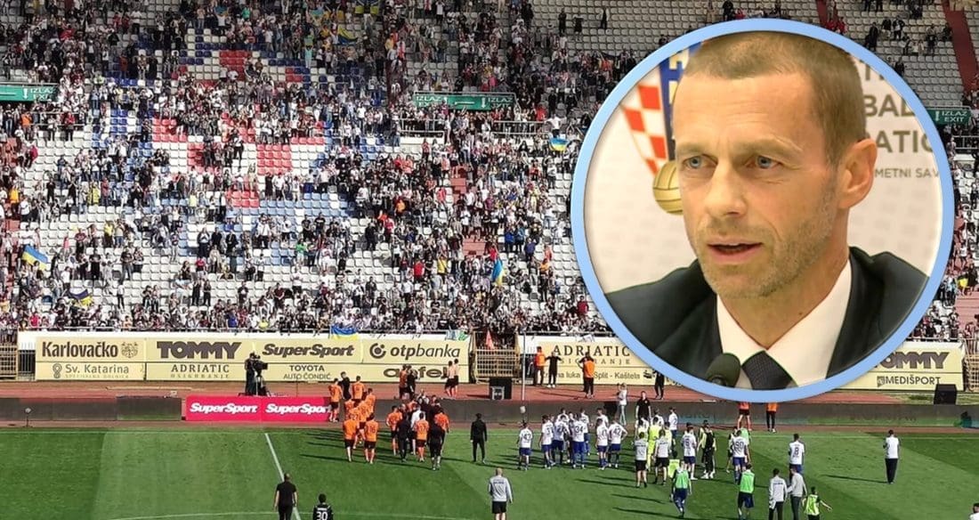 "Ovaj stadion ima dušu, iako bi trebao ozbiljnu renovaciju. Nogomet je protiv rata i nasilja. Ovaj rat je katastrofa za sve. Drago mi je da smo pokazali da imamo osjećaj za humanost - rekao je Čeferin, a zatim se dotakao Hajduka", kazao je te je nadodao: