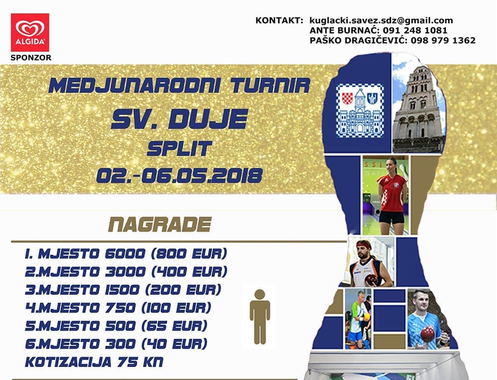 Turnir Sv. Duje održava se cijeli ovaj tjedan, a započeo je 30.travnja i završava u nedjelju 6.svibnja uoči blagdana zaštitnika grada Splita, Sv.Duje, u prostorima kuglane Poljud u neposrednoj blizi Hajdukovog stadiona.
