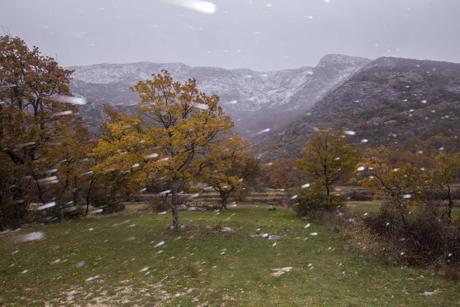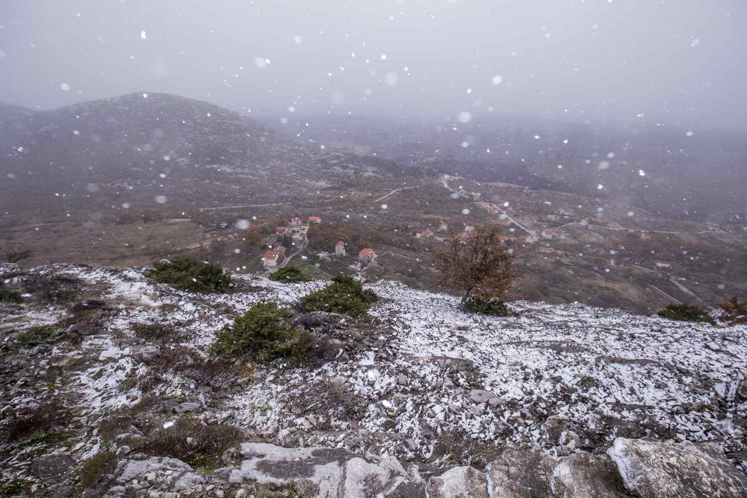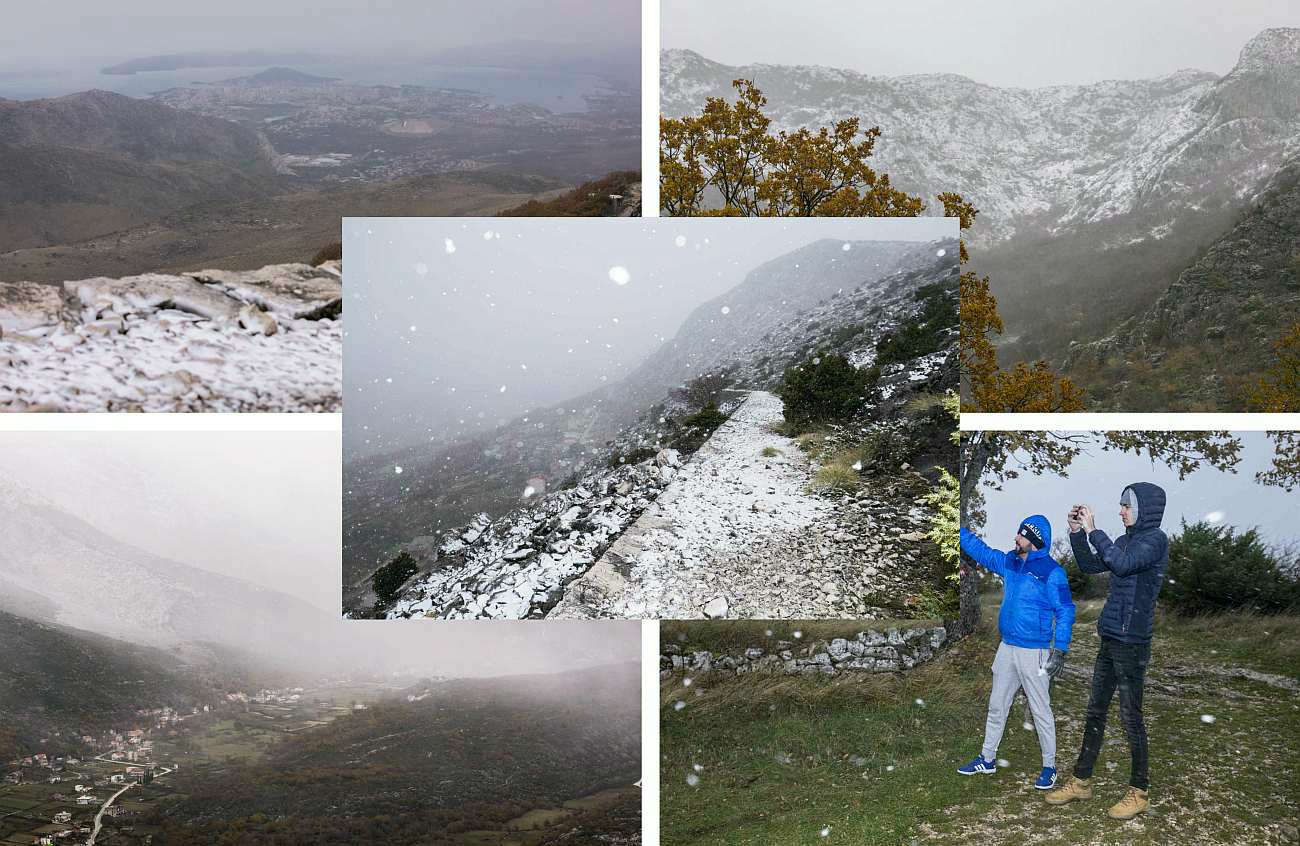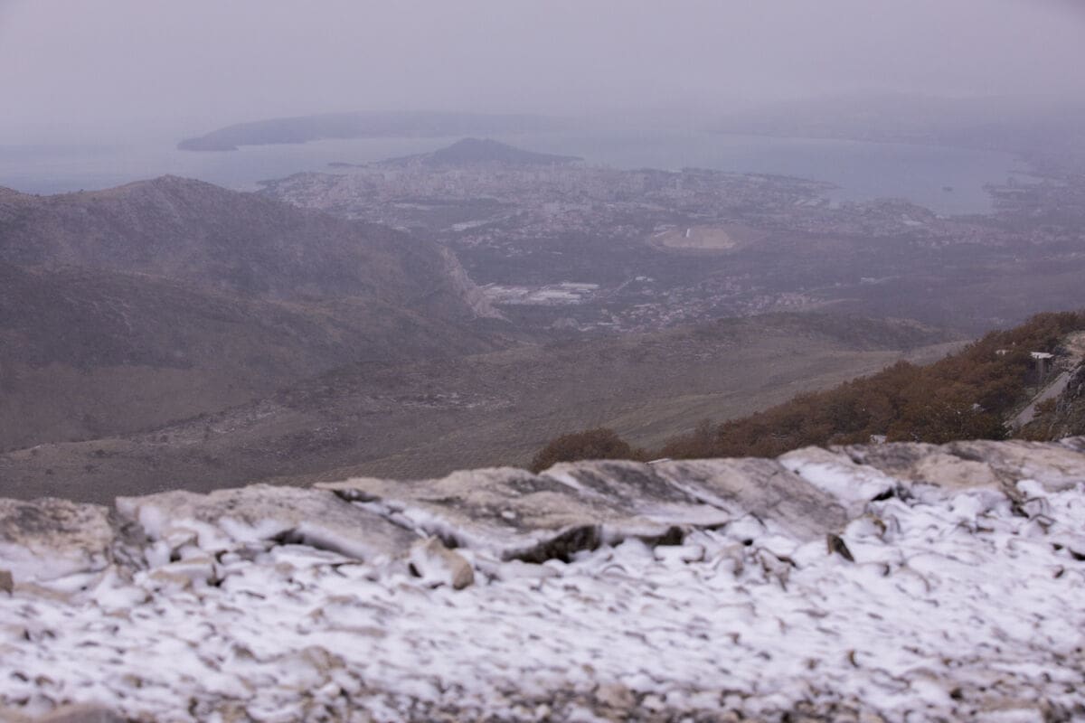 U potrazi za prvim snijegom otišli smo svega stotinjak metara iznad Sitnog, na makadam koji vodu prema planinarskom domu Umberto Girometta. Tamo već postoji tanak snježni pokrivač, a kako izgleda padanje snijega s pogledom na Split, Sitno, Dubravu, pa čak i Vidovu Goru na Braču, pogledajte u priloženoj fotogaleriji...
