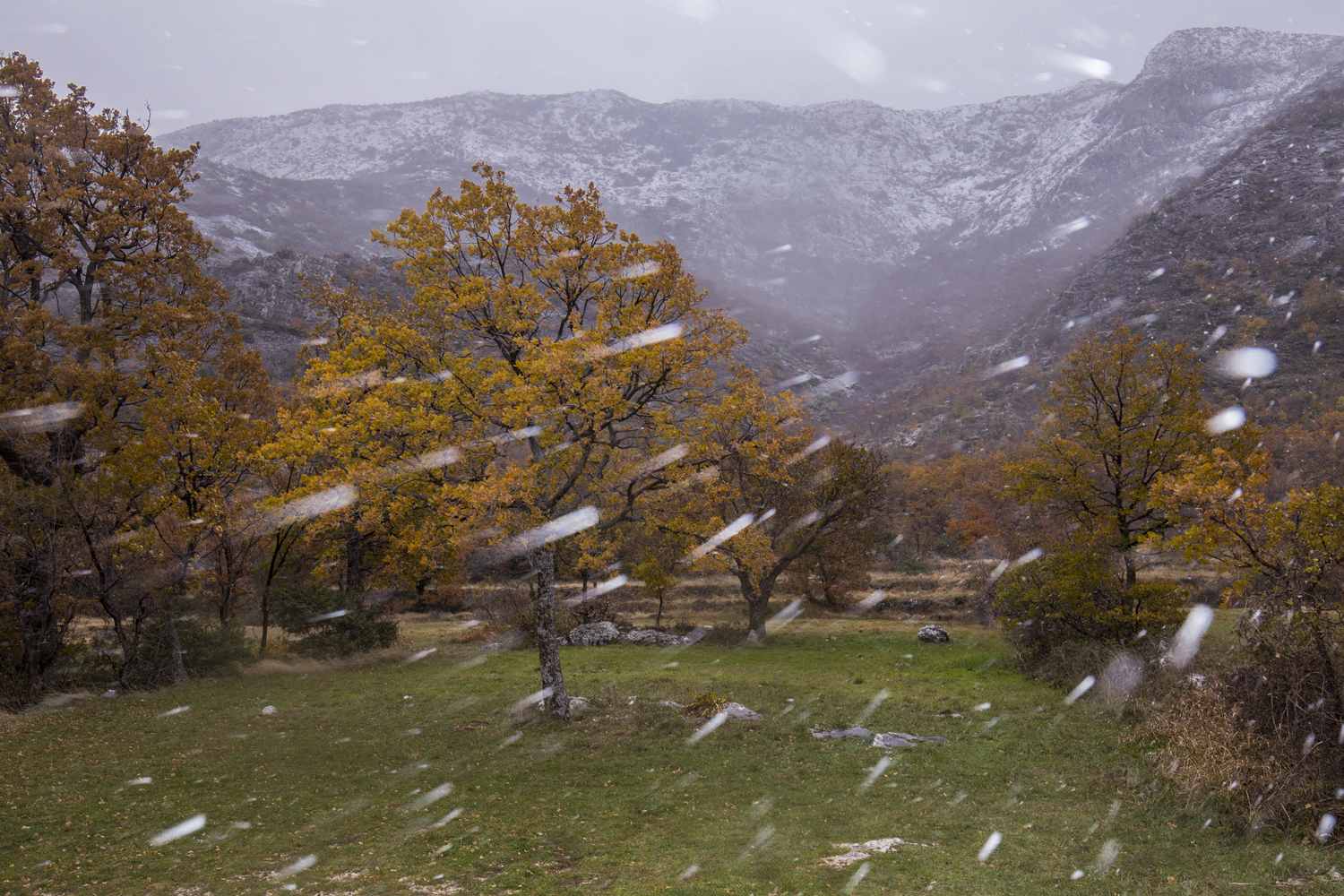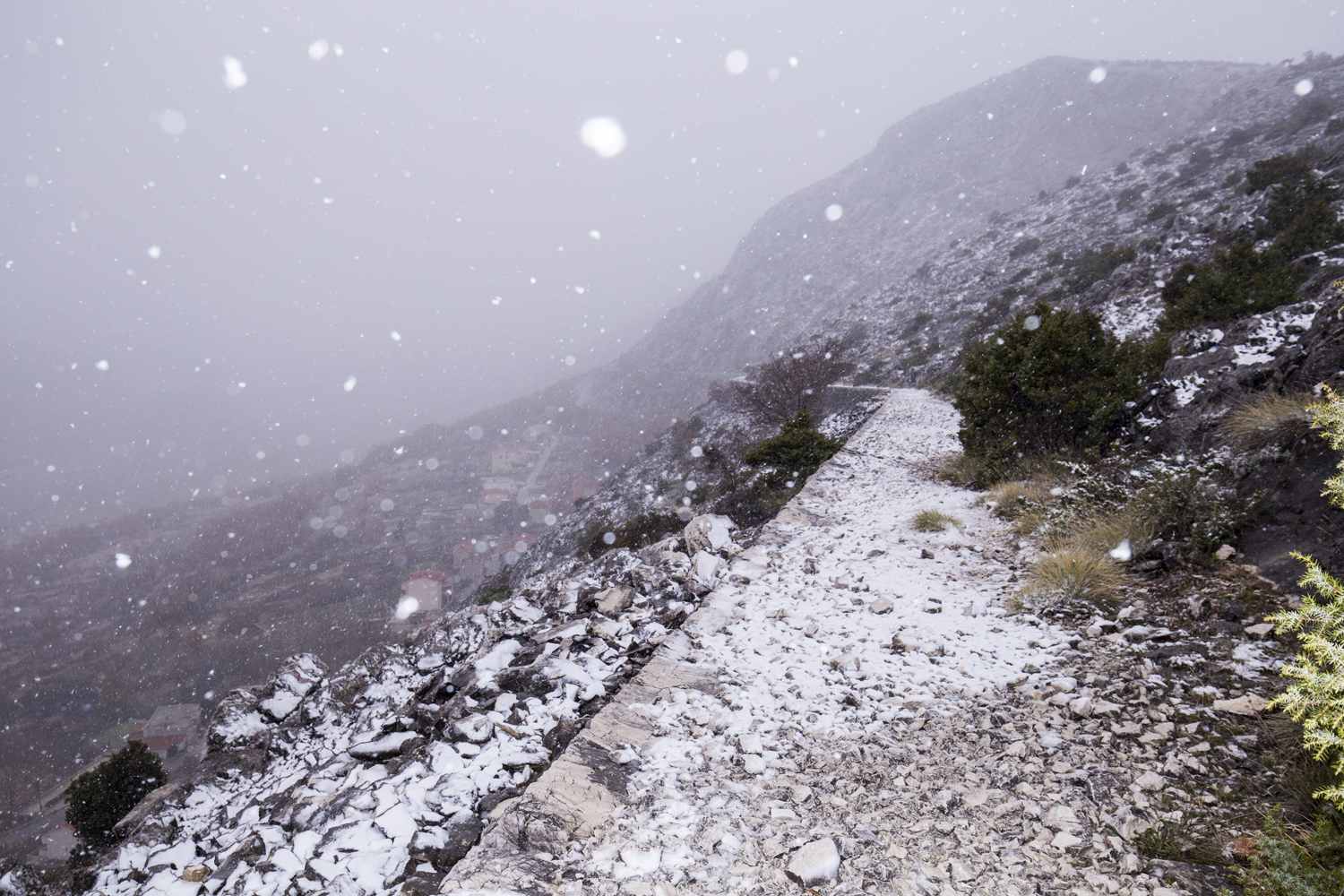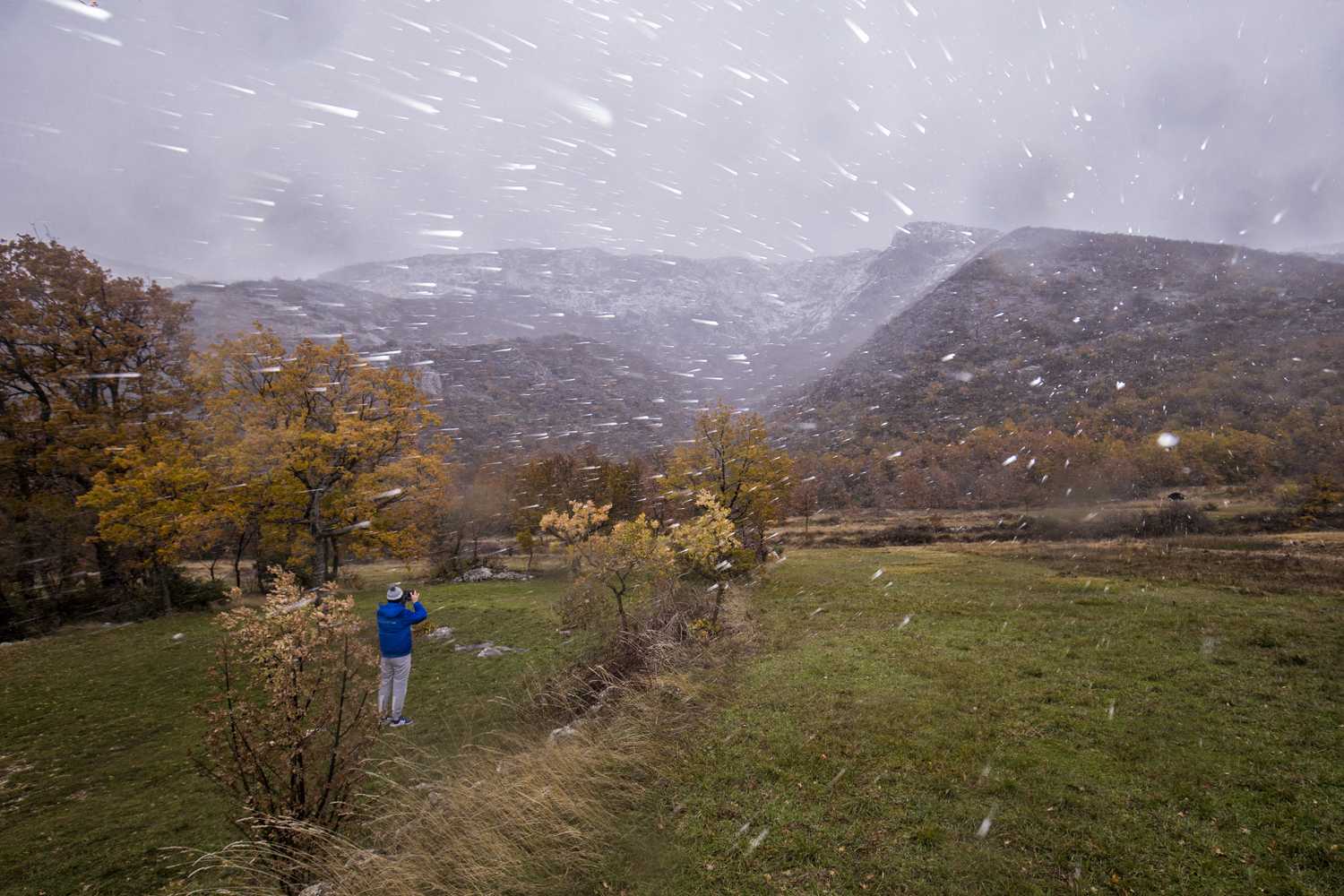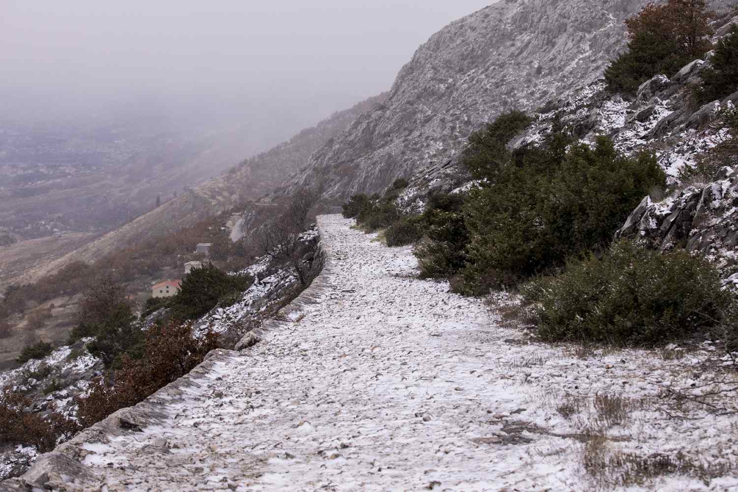 U potrazi za prvim snijegom otišli smo svega stotinjak metara iznad Sitnog, na makadam koji vodu prema planinarskom domu Umberto Girometta. Tamo već postoji tanak snježni pokrivač, a kako izgleda padanje snijega s pogledom na Split, Sitno, Dubravu, pa čak i Vidovu Goru na Braču, pogledajte u priloženoj fotogaleriji...