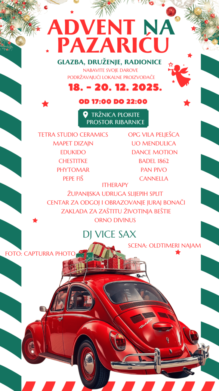 Blagdanski ugođaj dodatno će zaokružiti DJ Vice Sax, koji će se pobrinuti za ugodan, nenametljiv radostan adventski ritam, dok će ulaz u prostor obilježiti atraktivan oldtimer foto-korner u režiji Oldtimeri najma kao nezaobilazna kulisa za uspomene i fotografije. Upravo te trenutke, osmijehe i male blagdanske radosti, objektivom će zabilježiti Capturra Photo, bilježeći autentični duh posjetitelja i atmosfere Pazarića.