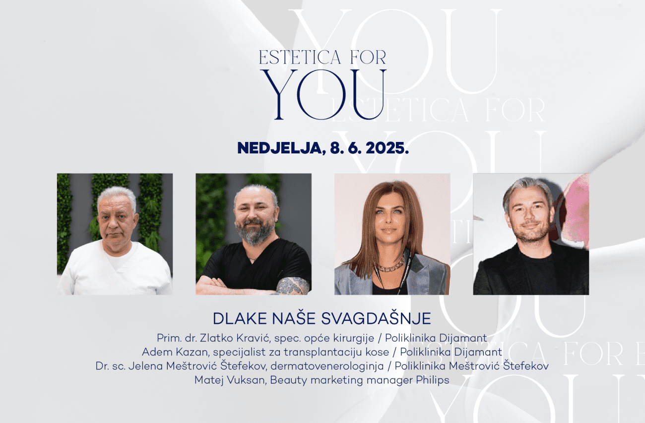 Sve što ste ikada željeli znati o najsuvremenijim estetskim tretmanima i zahvatima možete čuti uživo na beauty događaju godine – konferenciji za javnost „ESTETICA FOR YOU“, koja će se održati 8. lipnja u zagrebačkom Hotelu Esplanade. Prvi put u Hrvatskoj, svi koje zanimaju ove teme imat će priliku na jednom mjestu dobiti odgovore od najvećih zvijezda među estetičarima, liječnika čije je ime sinonim za vraćanje ljepote i mladenačkog izgleda. Među više od 25 vrhunskih stručnjaka su kirurzi Siniša Glumičić, Mladen Duduković, Dinko i Tomica Bagatin te dermatologinje Željana Bolanča, Jelena Jakić Petrović i Nevia Delalle. Bit će to jedinstvena prilika da publika iz prve ruke dozna dragocjene informacije iz njihove prakse stečene kroz desetljeća iskustva, ali i da im postavi konkretna pitanja o zadanoj temi. Posjetitelji će imati priliku čuti ispovijest influencerica Danijele Dvornik i Meri Goldašić o tome kako su im estetski zahvati i tretmani iz korijena promijenili život te priče dvije dame, koje su uz pomoć stručnjaka smršavjele čak 50 kilograma.