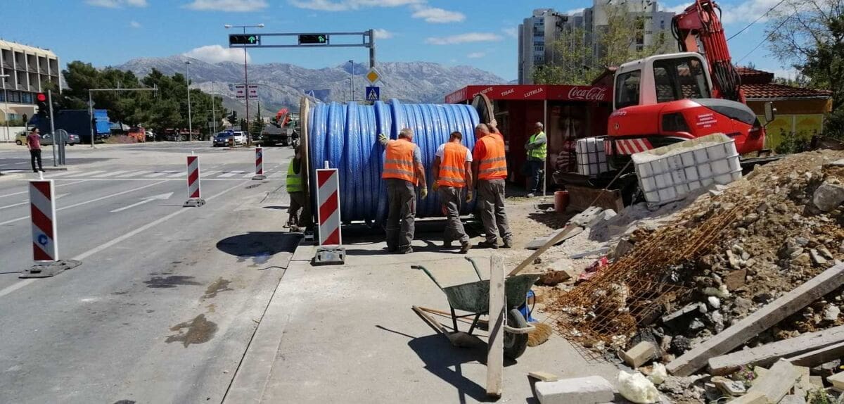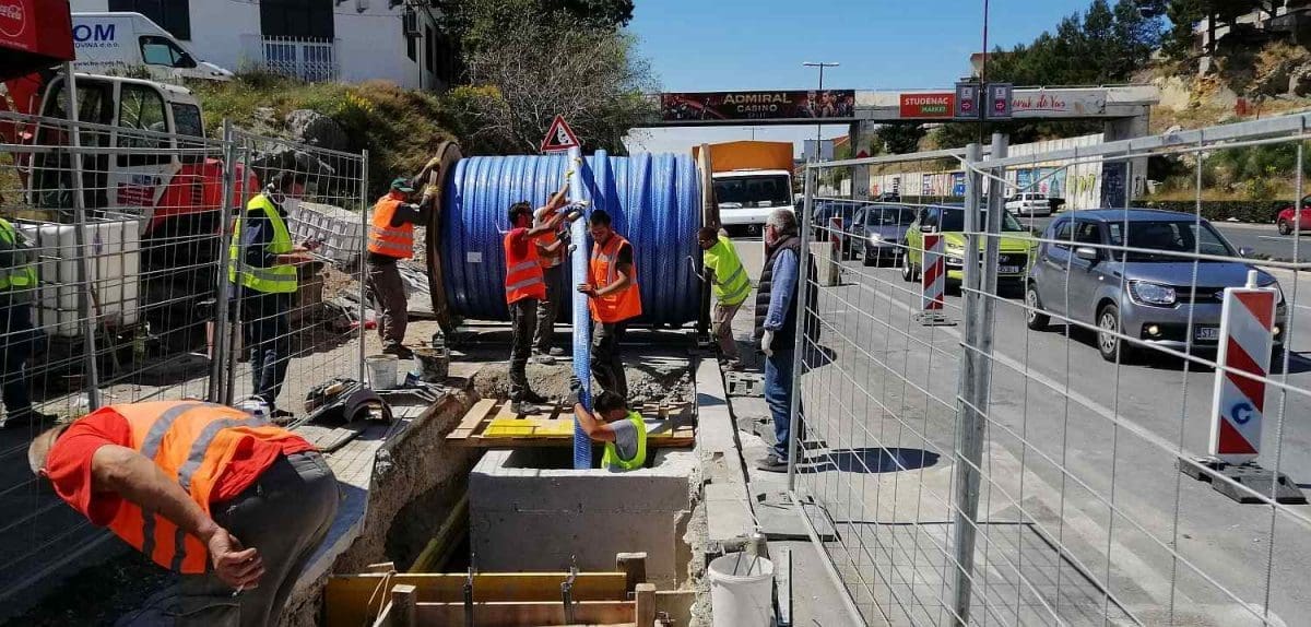 U tijeku su radovi na sanaciji postojećeg vodoopskrbnog cjevovoda u Splitu između križanja Poljičke s Putom Trstenika (kod LIDL-a) i križanja Poljičke s Ostravskom (kod HEP-a na Mertojaku) u ukupnoj duljini oko 920 metara, izvijestili su danas iz splitskog Vodovoda i kanalizacije. Njegovim ponovnim puštanjem u pogon zatvorit će se strateški važan vodoopskrbni prsten kojim se osigurava pouzdano rezervno napajanje pitkom vodom naših dviju bolnica u sklopu KBC-a Split - Firule i Križine. Po prvi puta u Hrvatskoj, sanacija ovog vodoopskrbnog cjevovoda provodi se po posebnoj metodi – bez iskopa. Ugovorena vrijednost radova iznosi cca 3,8 milijuna kuna.