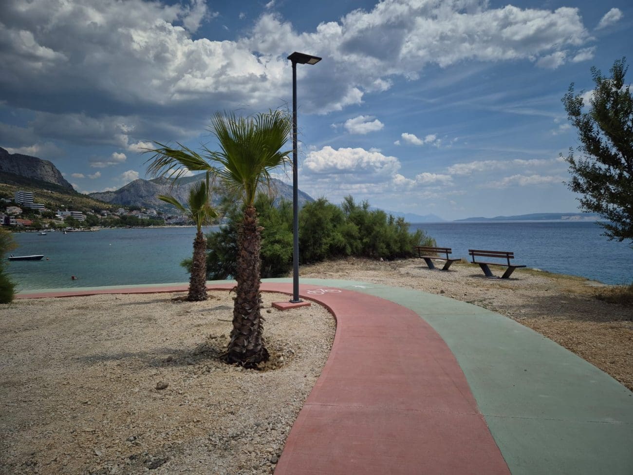 U sklopu projekta gradi se pješačko-biciklistička staza široka 3 metra i duga 2.884 metra, koja se proteže od Dugog Rata, preko Duća, sve do kampa Galeb u Omišu. Staza je označena različitim bojama za pješake i bicikliste.