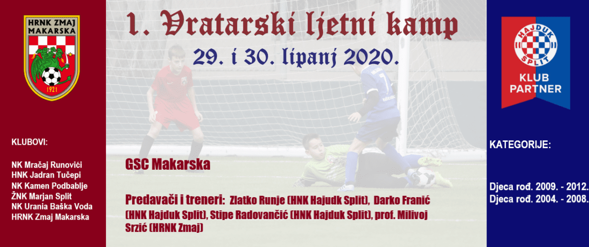 U organizaciji HRNK Zmaj i uz podršku kluba Partnera HNK Hajduk Split, na GSC Makarska 29. i 30. lipnja 2020. god. održati će se prvi vratarski ljetni kamp. Klubovi koji sudjeluju su NK Mračaj, HNK Jadran Tučepi, NK Kamen, ŽNK Marjan Split, NK Urania i domaćin HRNK ZMAJ Makarska.