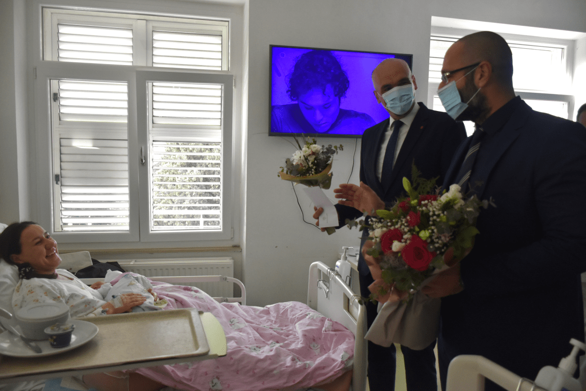 Župan Šibensko-kninske županije dr. sc. Marko Jelić i njegova zamjenica Iris Ukić Kotarac posjetili su danas rodilište Opće bolnice Šibensko-kninske županije, gdje je ove godine u 55. minuti nakon ponoći rođena prva beba u Šibensko-kninskoj županiji.