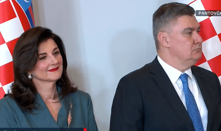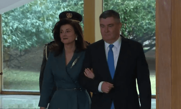Sanja Musić Milanović na inauguraciji svog supruga, predsjednika Republike Hrvatske Zorana Milanovića, odabrala je crno-sivu kombinaciju. Kombinaciju je upotpunila pelerinom.