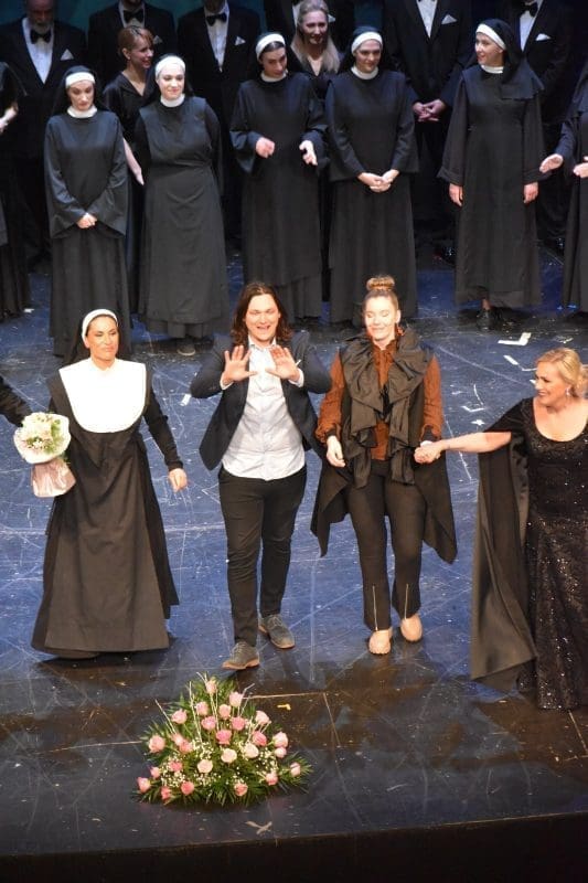 Korisno je bilo pogledati publiku nakon dugačkog završnog pljeska. Mnogi su ganuto govorili „bez teksta sam“, neki su čak brisali i suze. Nakon premijere raskošna Verdija koji je emotivnost gradio na grandioznoj ljubavno-izdajničkoj priči, i ovaj je Puccini opet uzdrmao oduševljene gledatelje, ali potpuno drugačijim pristupom – suptilnošću kojom je ogrnuta tužna samostanska priča, dubokim emocijama koji izviru iz kristalne čistoće ženskih glasova, pričom o ljubavi i patnji koja je veća i od života. Još jedan biser orkestra, zbora i solista HNK-a ostat će upamćen po ljepoti koja ostavlja bez riječi.