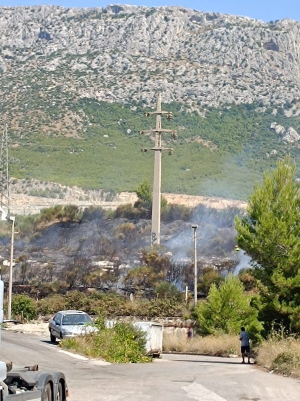 Kako neslužbeno doznajemo, požaru je prethodilo pucanje žice dalekovoda. Dio područja Kaštela i Solina ostao je bez struje.