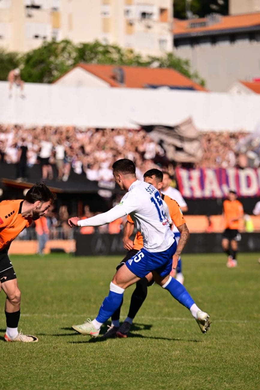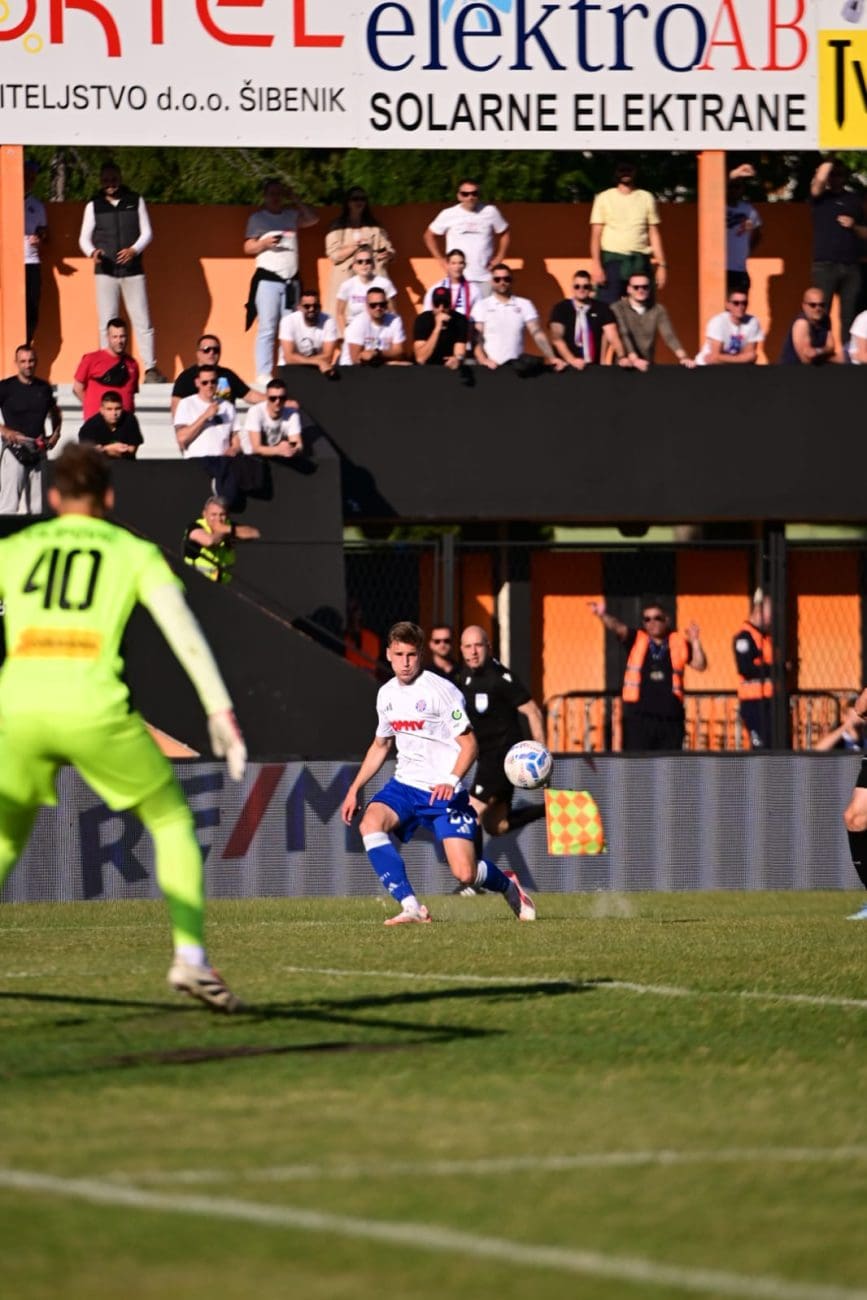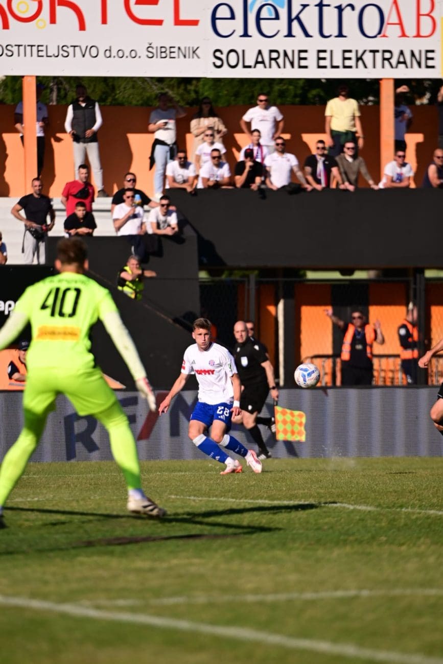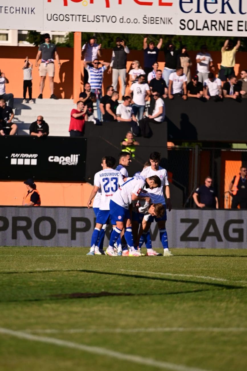 Nogometaši Hajduka danas od 17 sati igraju protiv Šibenika na Šubićevcu u posljednjem kolu SuperSport HNL-a, a ujedno i pokušavaju osvojiti prvenstvo koje je već 20 godina nedostižno. Trenutačni je rezultat 1-0 zahvaljujući Pukštasu koji je zabio gol u 71. minuti.