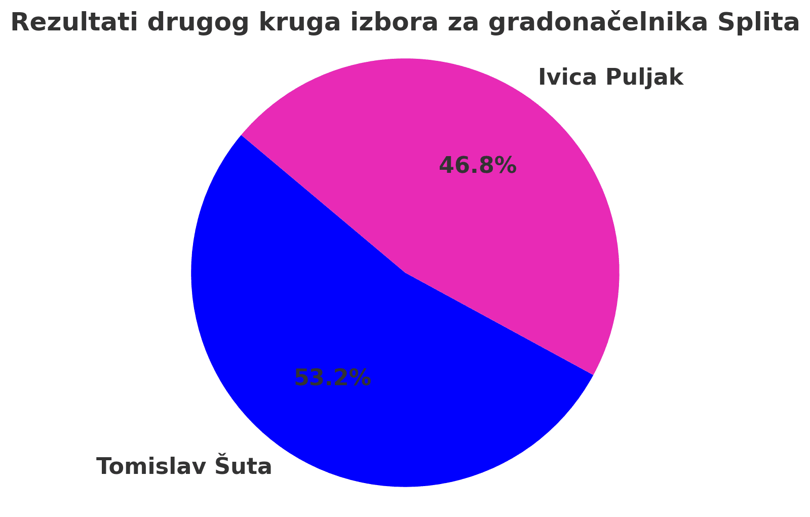 U Splitu je došlo do promjene na čelu grada. Tomislav Šuta (HDZ) je novi gradonačelnik. Osvojio je 30.586 glasova. Dosadašnji gradonačelnik, Centrov Ivica Puljak osvoji je 26.921 glas.