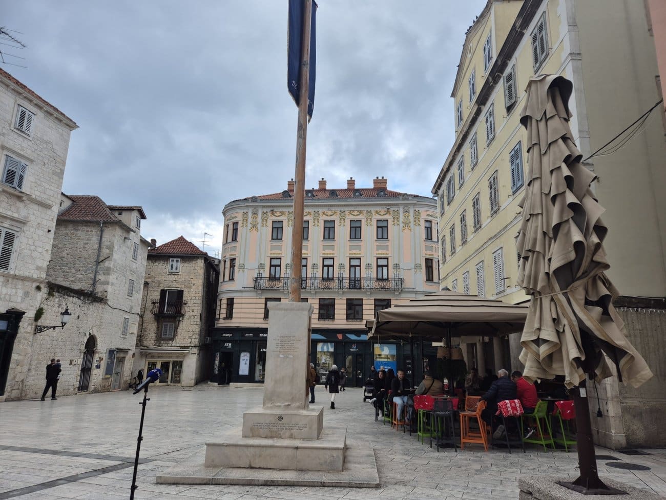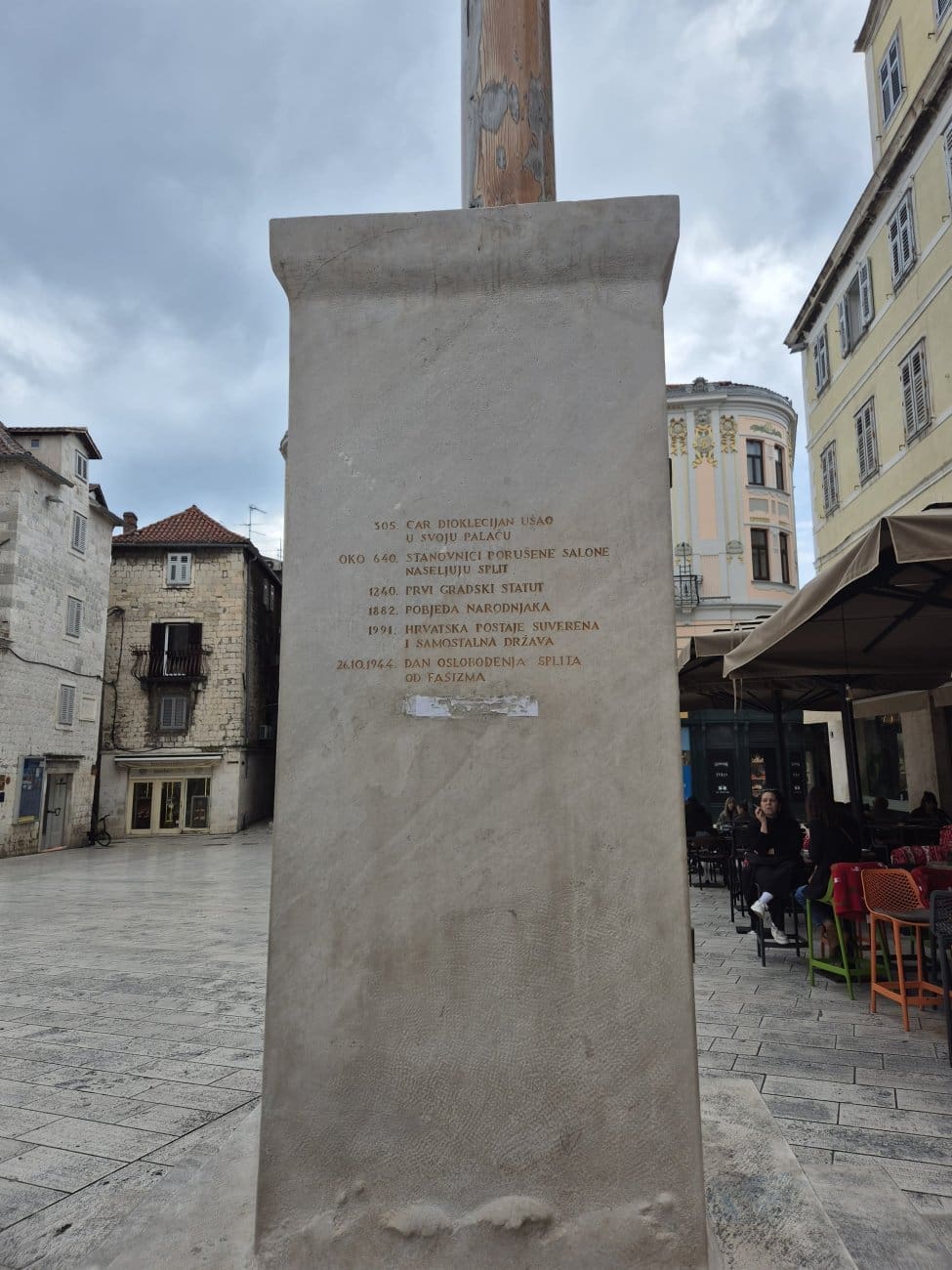 Podsjetimo, odlukom Trgovačkog suda Grad Split morat će u roku od 15 dana s postolja jarbola na središnjem gradskom trgu Pjaca izbrisati natpis kojim se obilježava dan oslobođenja grada od fašizma, uklesan po odluci Gradskog vijeća prije manje od godine dana. Sud je odlučio da je klesanjem datuma na štandarac Grad Split povrijedio autorska prava akademskog kipara Kuzme Kovačića koji se već lani usprotivio takvoj intervenciji te je pokrenuo sudski postupak.