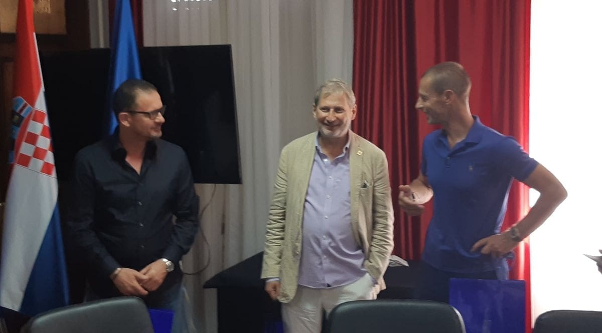 U sklopu boravka u gradu pod Marjanom zbog održavanja Plazma Sportskih igara mladih, gradonačelnika Ivicu Puljka i njegove zamjenike Antonija Kuzmanića i Bojana Ivoševića posjetili su jutros povjerenik Europske komisije za budžet i administraciju Johannes Hahn, predsjednik Europske nogometne federacije Aleksandar Čeferin te nogometni velikan Predrag Mijatović.