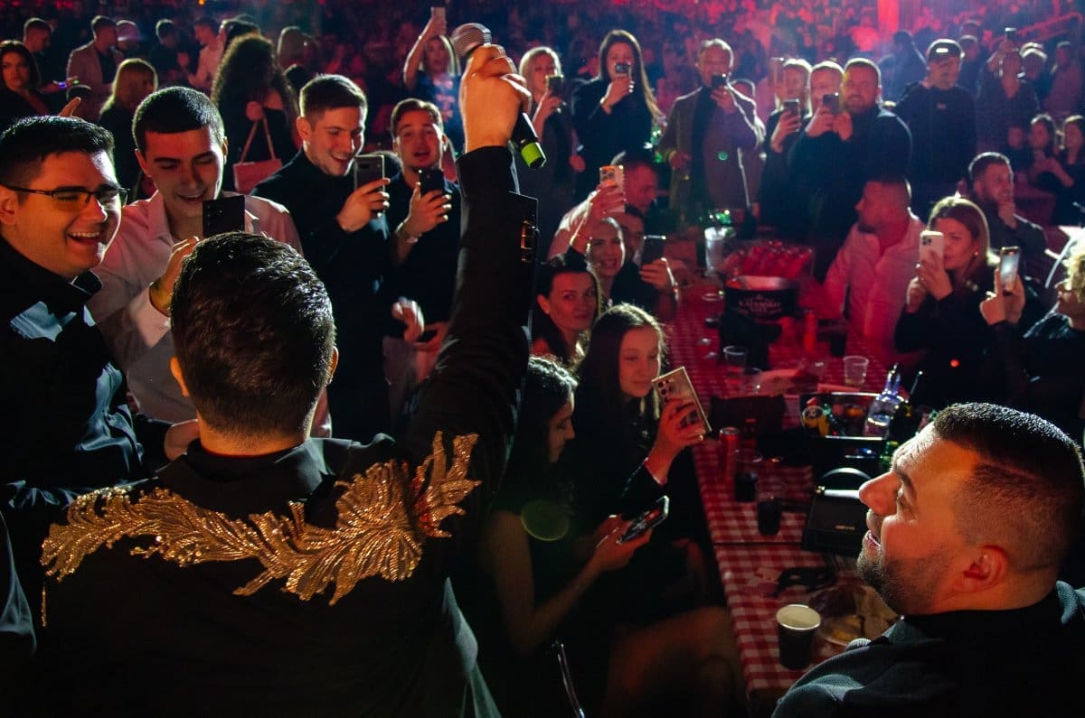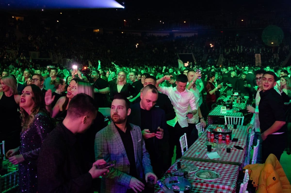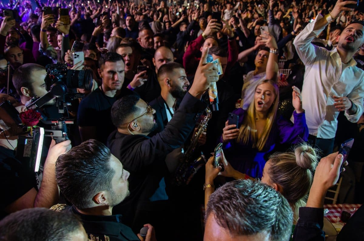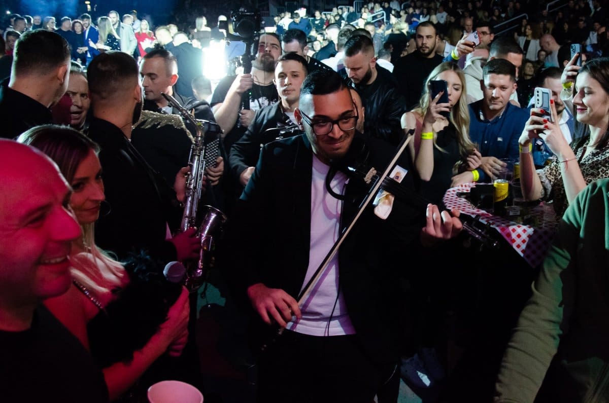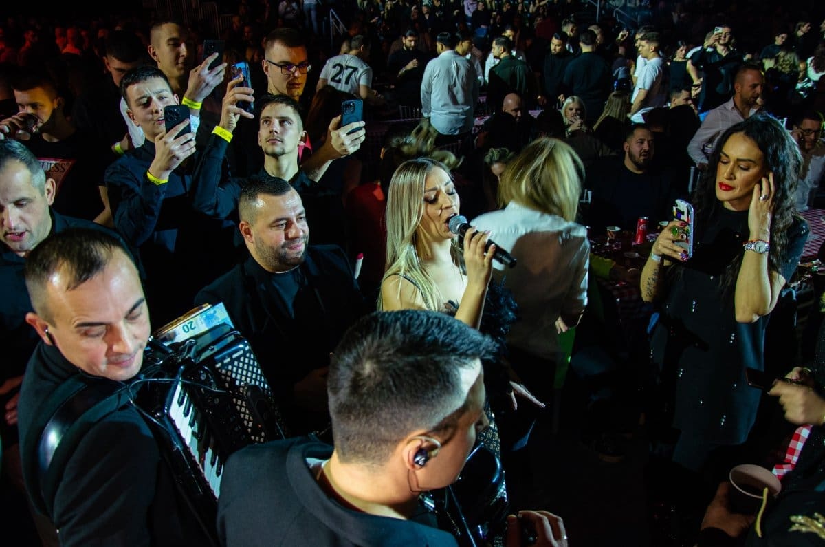 Da Zagreb (ipak) ima narodnjačko srce, pokazala je puna Arena u četvrtak navečer na drugoj Kafanskoj večeri. Svaki dašak atmosfere snimalo je čak 16 kamera u izravnom TV prijenosu za jednu bosansku televiziju, a stotinu konobara imalo je samo jedan zadatak – da grla posjetitelja ne ostanu suha. Punih devet sati trajao je glazbeni maraton turbofolk hitova u izvedbi osam velikih zvijezda narodnjačke glazbe.