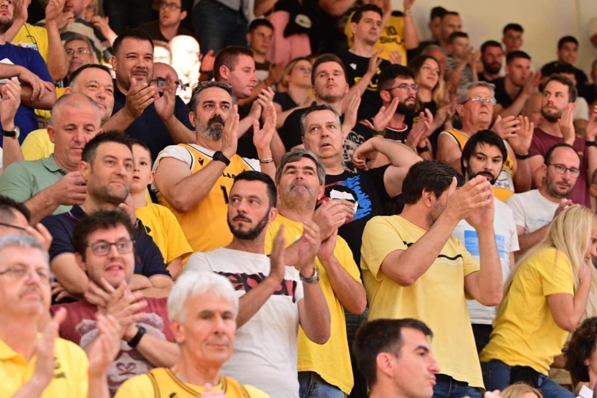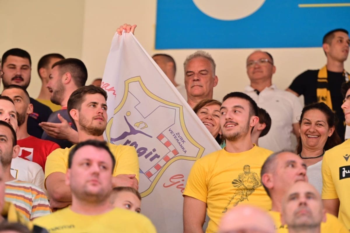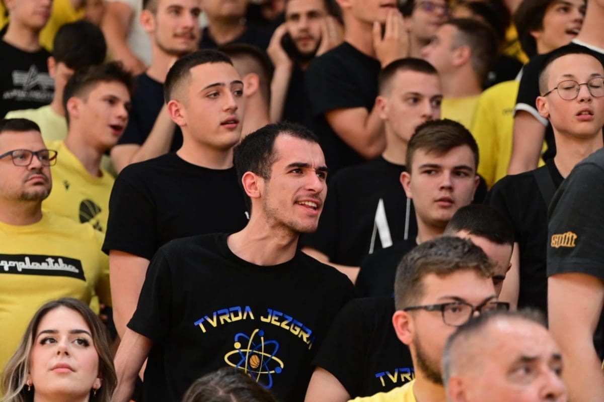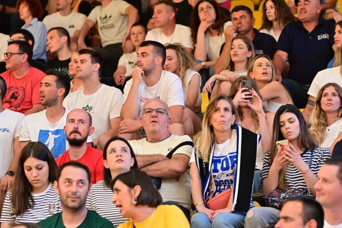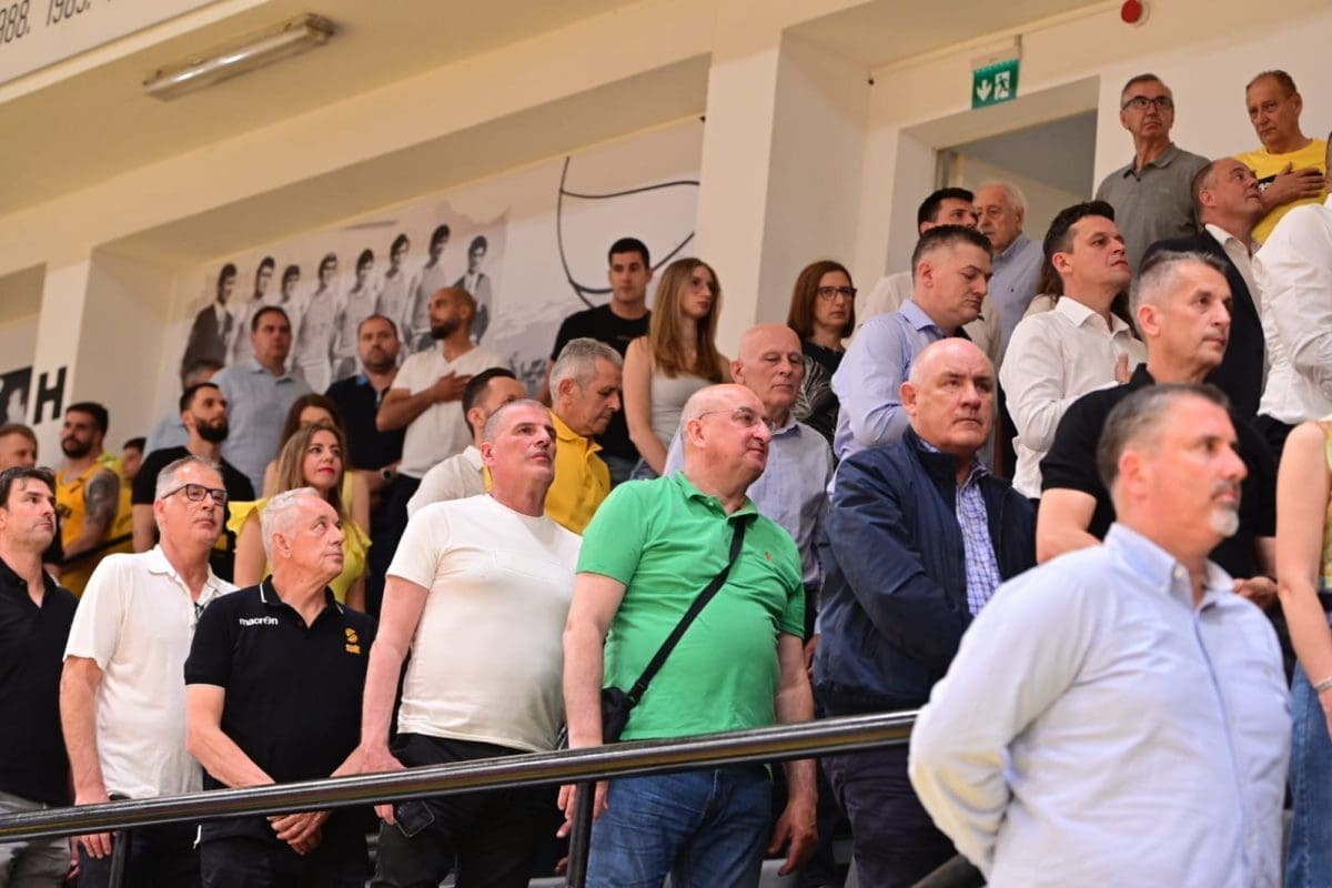 Susret je počeo u u 20 sati, a na samom početku pune tribine pozdravile su mušku i žensku momčad vaterpolo kluba Jadran, koji su osvojili titule prvaka Hrvatske.