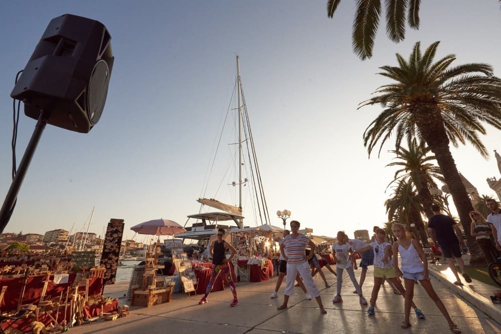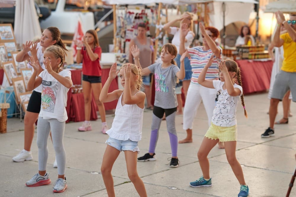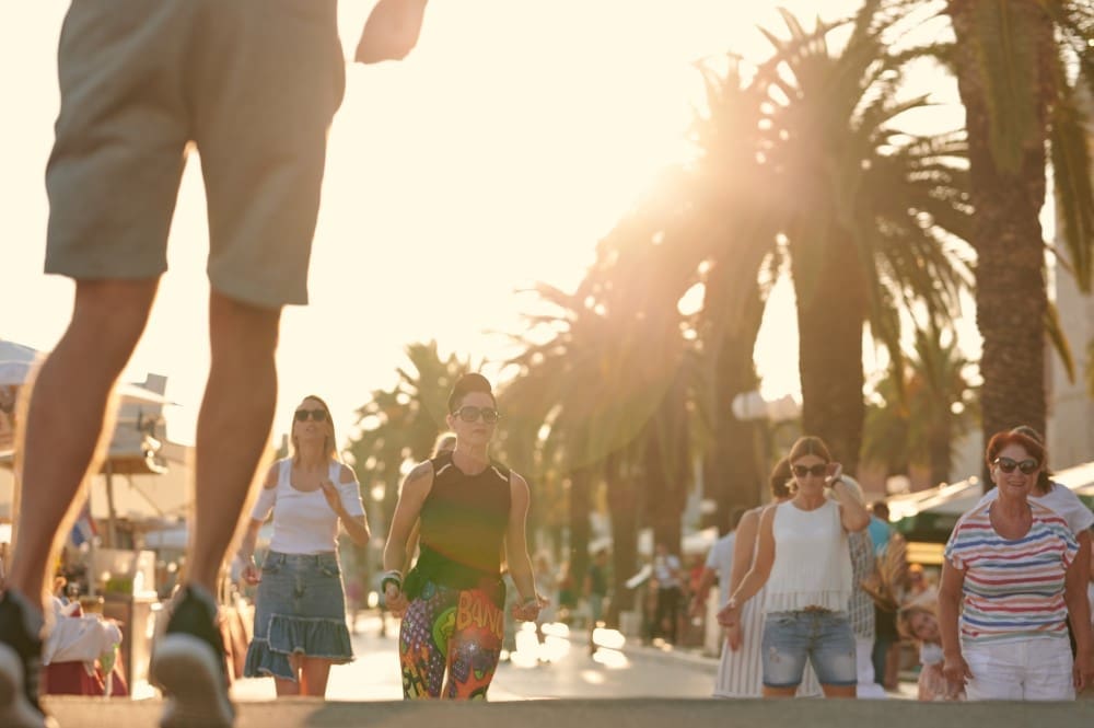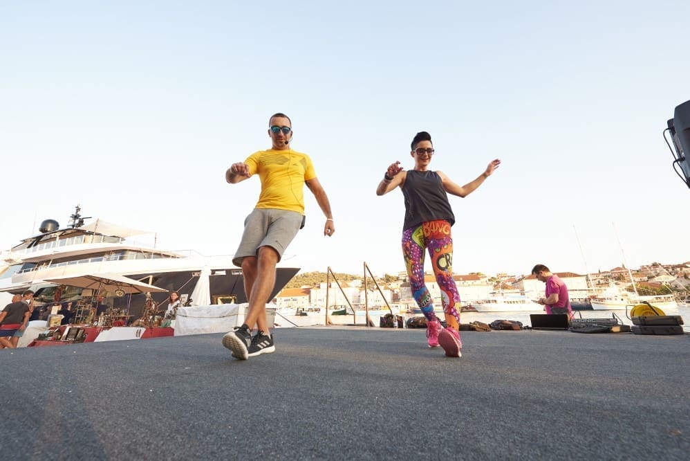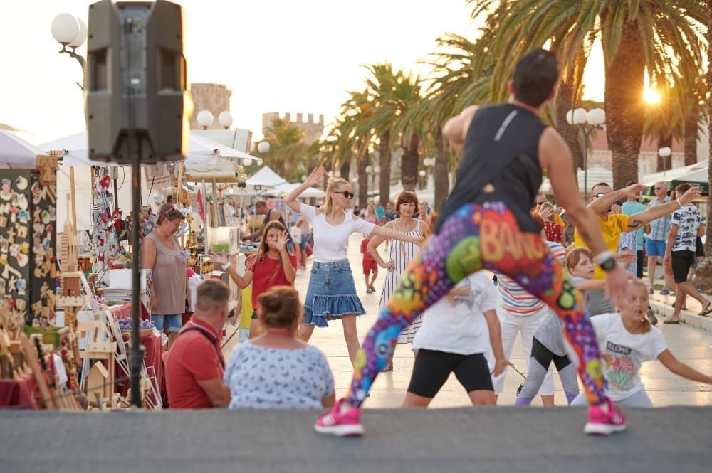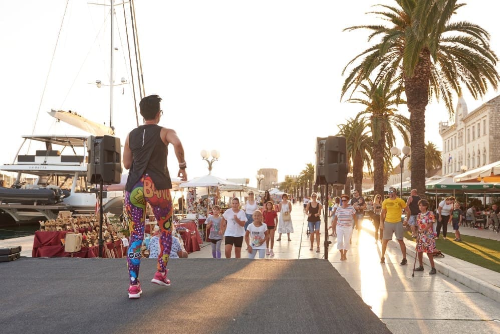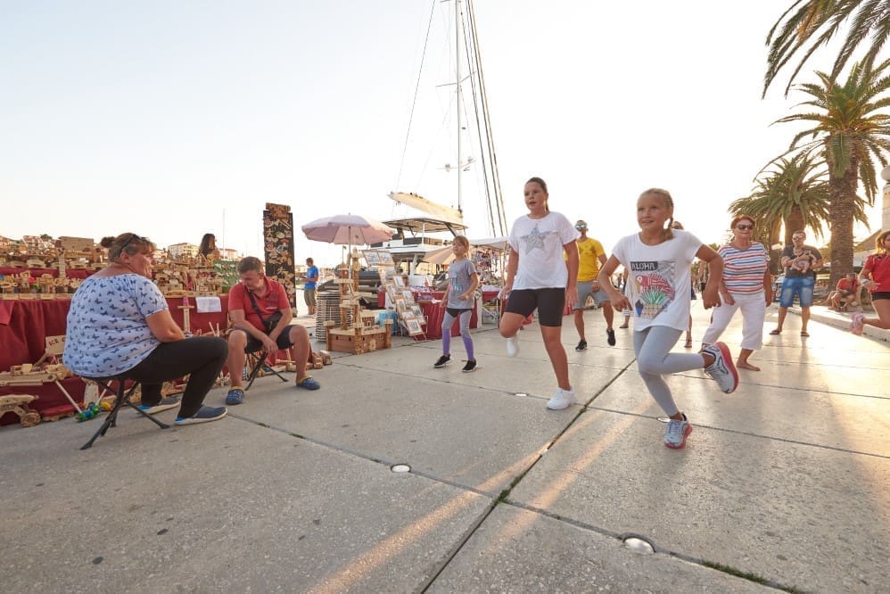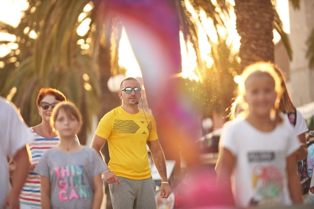 Manifestacija je započela vježbama zagrijavanja i razgibavanja koje je provodio fizioterapeut Teo Radić, dok su okupljeni ispred pozornice slijedili upute.