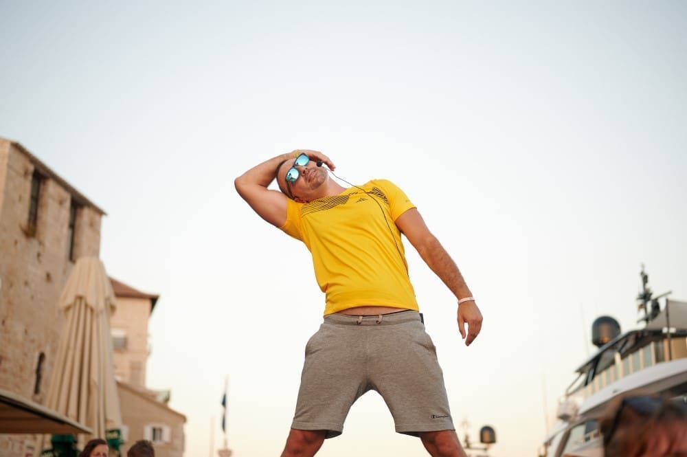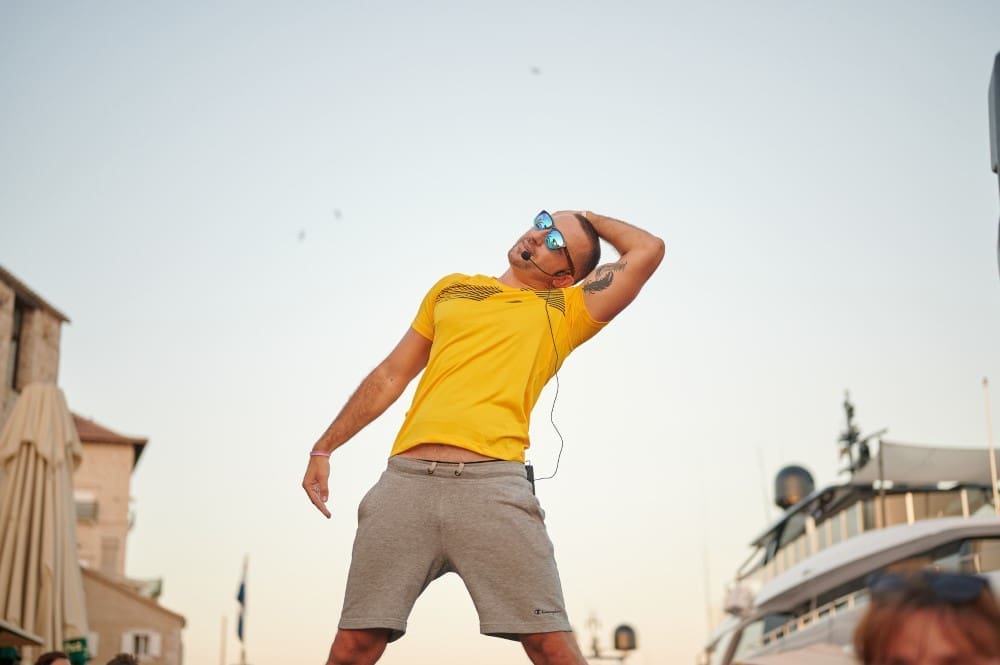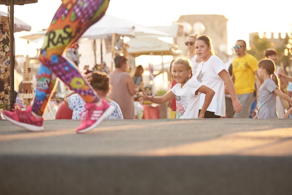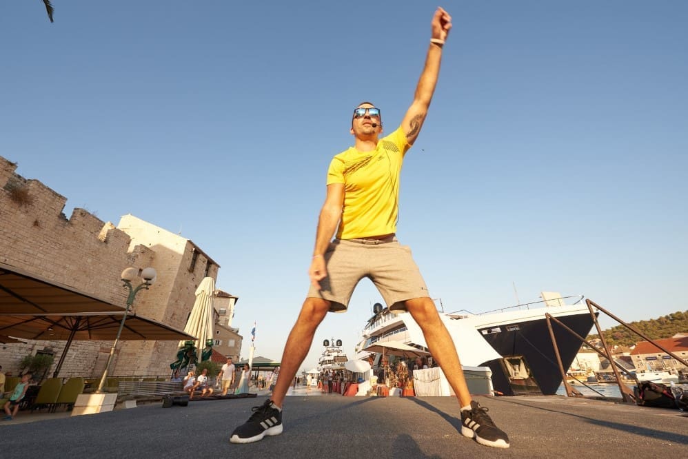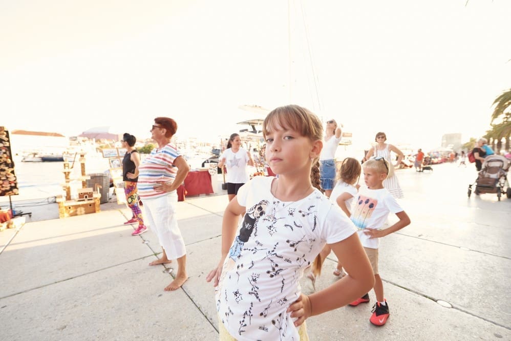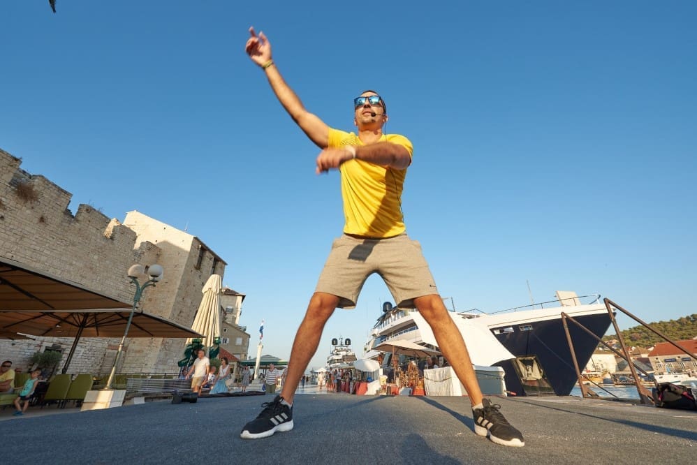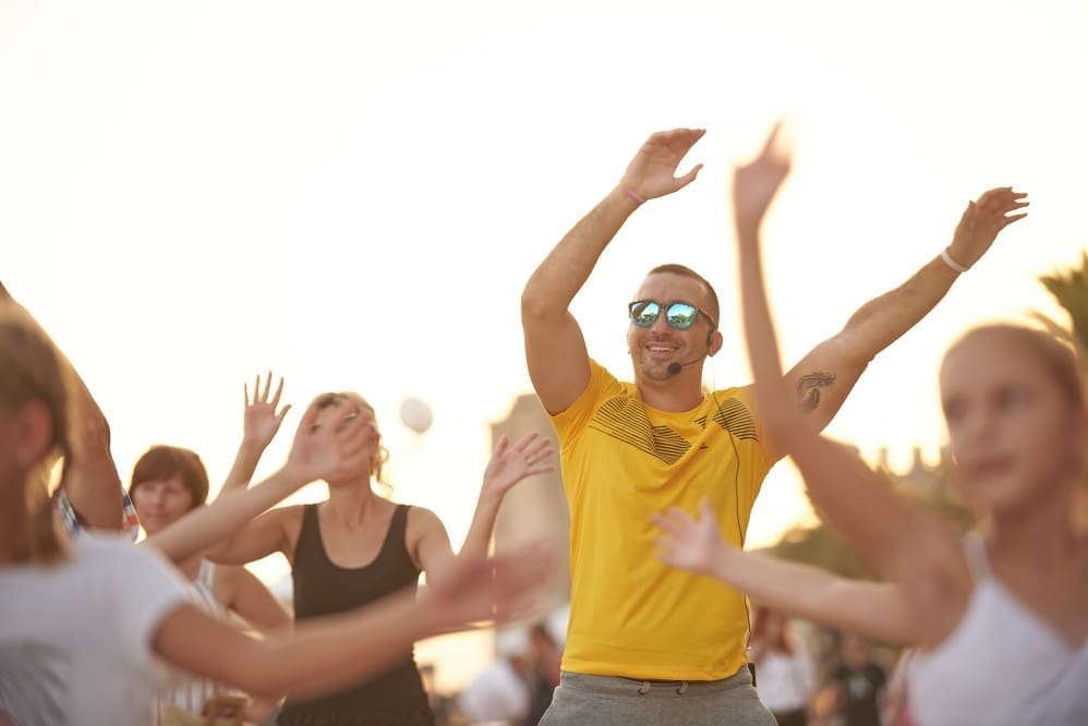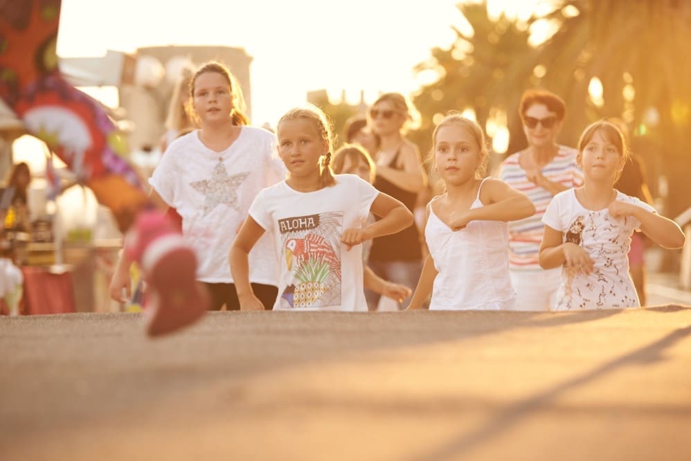 Manifestacija je započela vježbama zagrijavanja i razgibavanja koje je provodio fizioterapeut Teo Radić, dok su okupljeni ispred pozornice slijedili upute.
