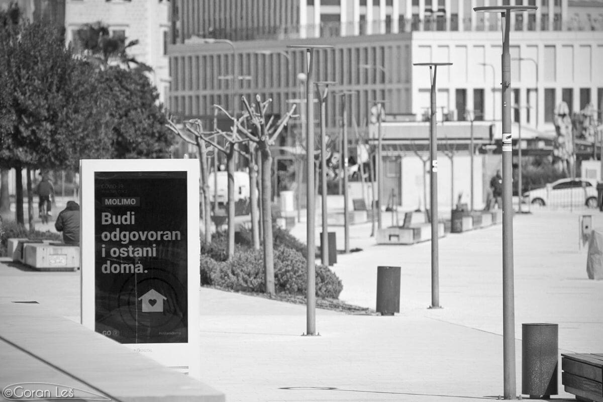 Split nije ništa drugačiji po pitanju discipline građana i poštivanja mjera od ostatka zemlje. Svjedoči tome sjajna fotogalerija fotografa Gorana Leša koji je različite dijelove grada snimao crno-bijelom tehnikom koja ostavlja još dublji dojam.