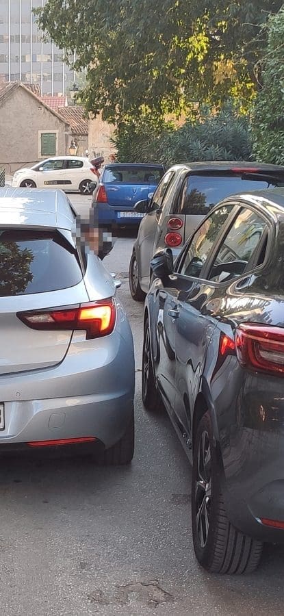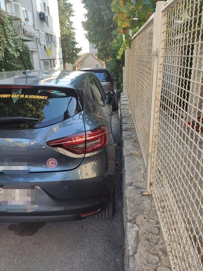 Naime, jedan automobil zagrebačkih registarskih oznaka parkirao je svoje vozilo tako da su se ostali morali doslovno provući između zida i parkiranog auta na svega koji centimetar udaljenosti.