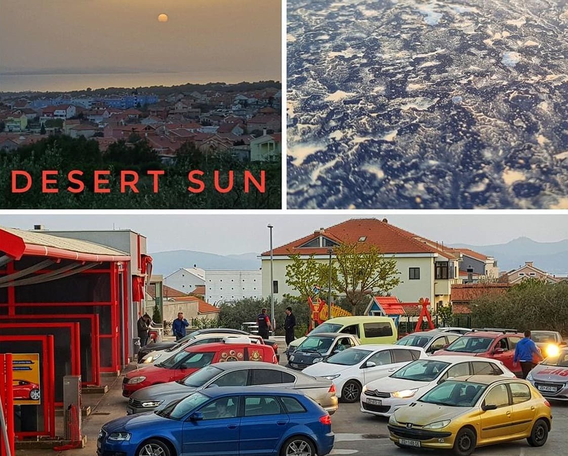Ogromne količine pijeska i prašine pustinjskog podrijetla u zraku diljem Dalmacije već danima u najmanju ruku izluđuju vlasnike automobila, osobito onima kojima je stalo do čistoće njihovih limenih ljubimaca. Ako je netko pokušao oprati svoj automobil zadnjih dana, brzo je vidio da je to nemoguća misija. Naslage se u roku od nekoliko minuta stvaraju na vanjskim površinama automobila, a stanje osobito zanimljivo bilo jučer u sjevernoj Dalmaciji gdje je bilo dovoljno i vrlo malo (blatnjave) kiše da nered bude još gori.