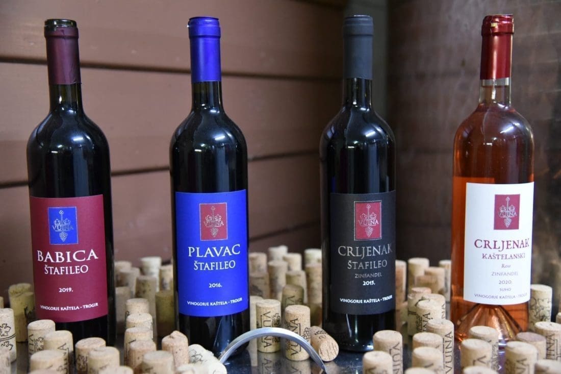 Vina vinarije Vuina imaju posebno profinjenu etiketu koju krasi grozd poput onoga na grbu obitelji Štafileo, koja je osnivač Kaštel Štafilića, te ovaj vinar uz promociju crljenka promovira i povijest Kaštela.